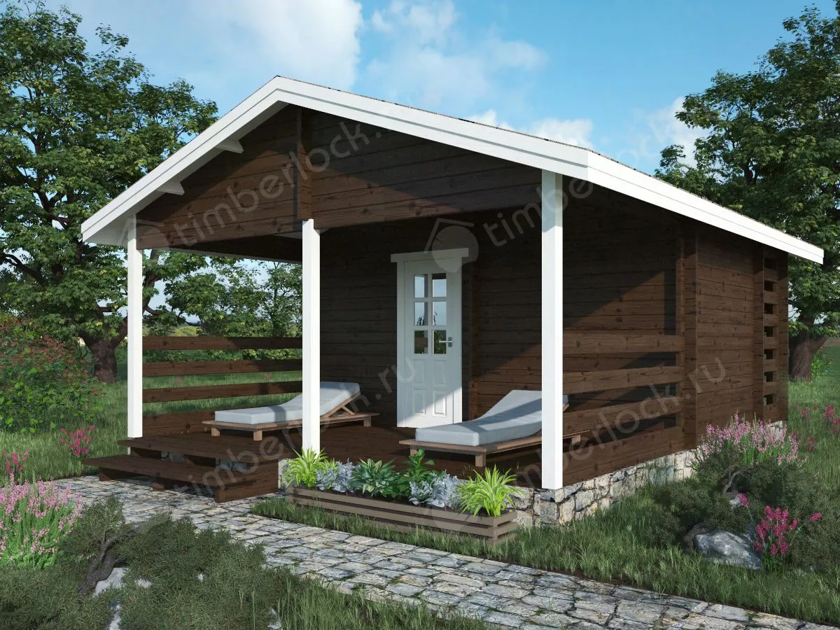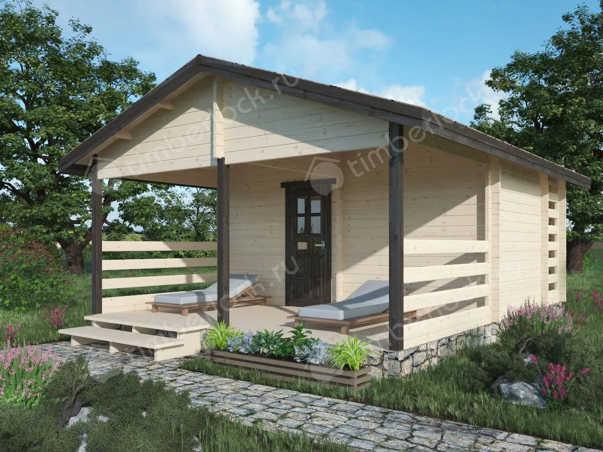 Оптимальный вариант средней садовой бани. При относительно небольших размерах в этой планировке вместилась парилка 2х2м, душевая комната, комната отдыха и предбанник с туалетом. Дровяная печь с панорамным стеклом придаст уют и комфорт вашему отдыху. Отличный вариант для 4-7 человек.