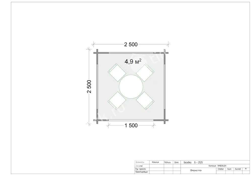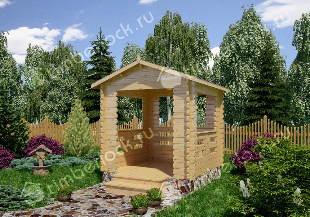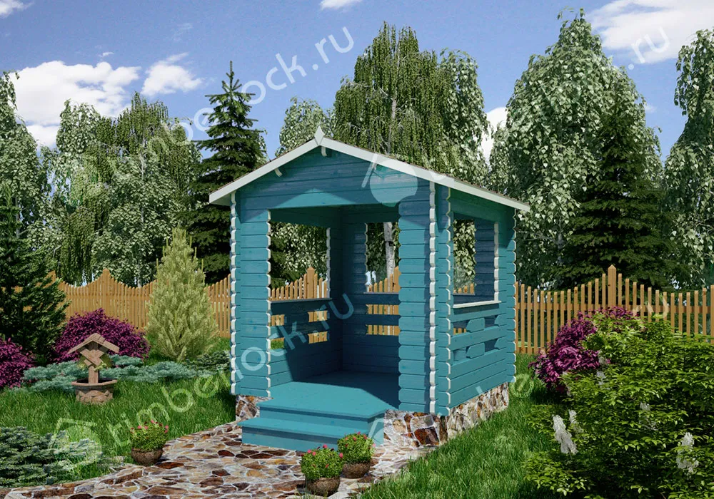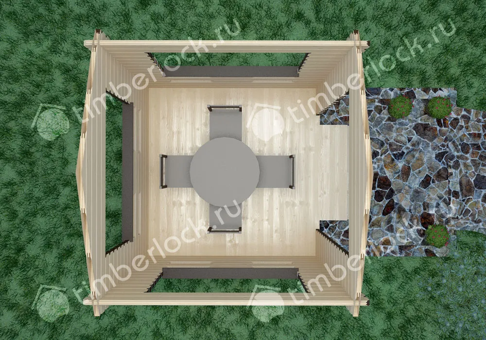 Садовая открытая беседка 2,5х2,5м благодаря компактным размерам отлично подойдёт для для отдыха на небольшом садовом участке. Полезная площадь составляет 4.9 м2. В ней можно разместиться компанией до 4-х человек.