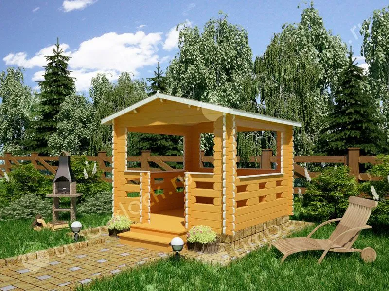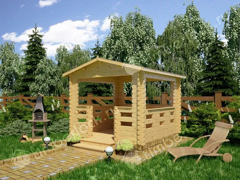 При изготовлении беседки используется профилированный брус камерной сушки. Благодаря этому не требуется усадка и беседка готова к эксплуатации сразу после окончания строительства.