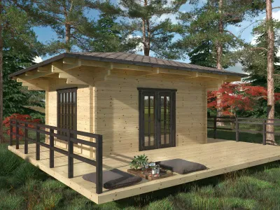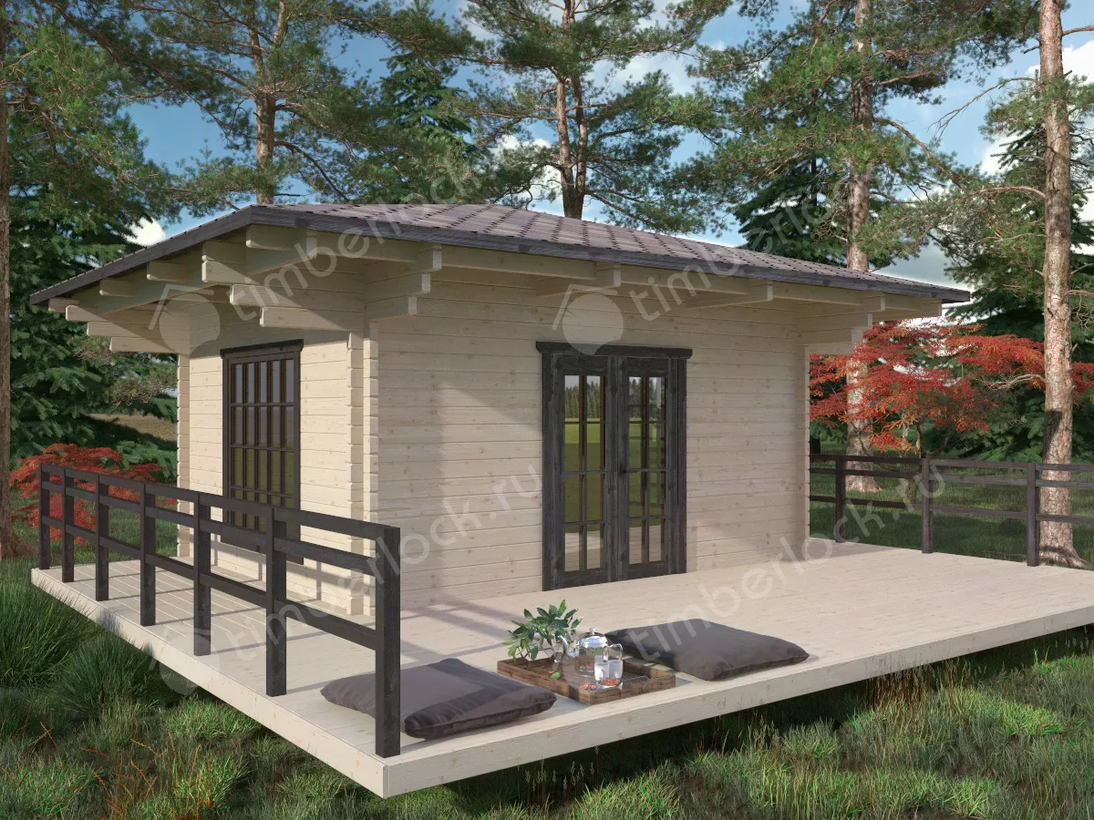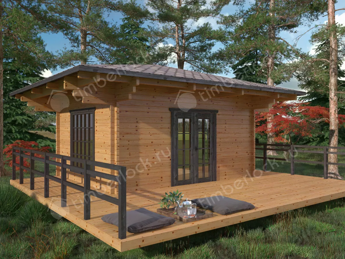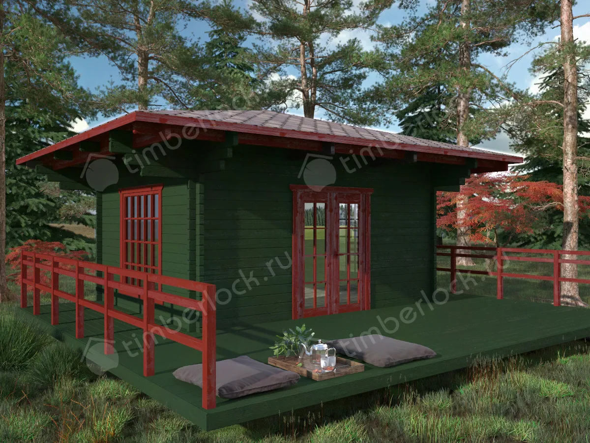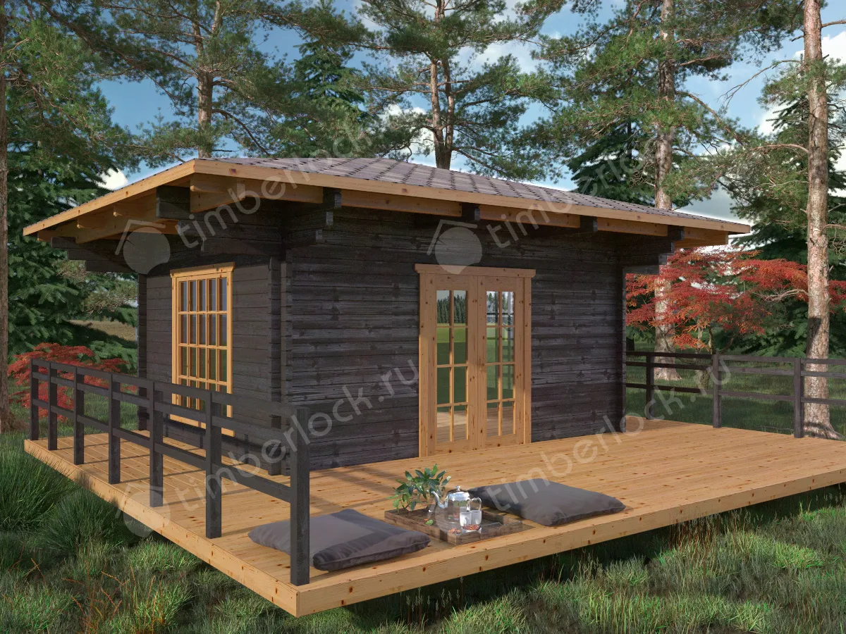 Отличный вариант теплой беседки в японском стиле с витражным окном и с большой террасой. При размерах 4х5м и площади комнаты 17.5м2 эта беседка является отличным вариантом для отдыха большой компании на природе.
