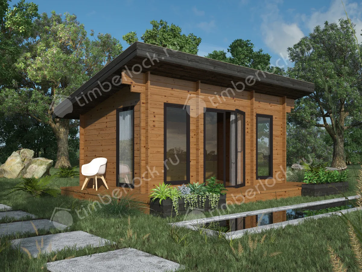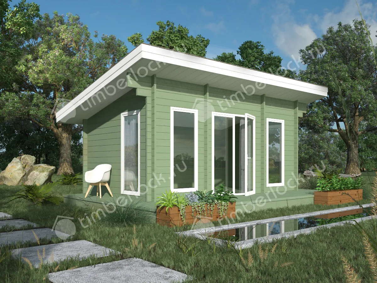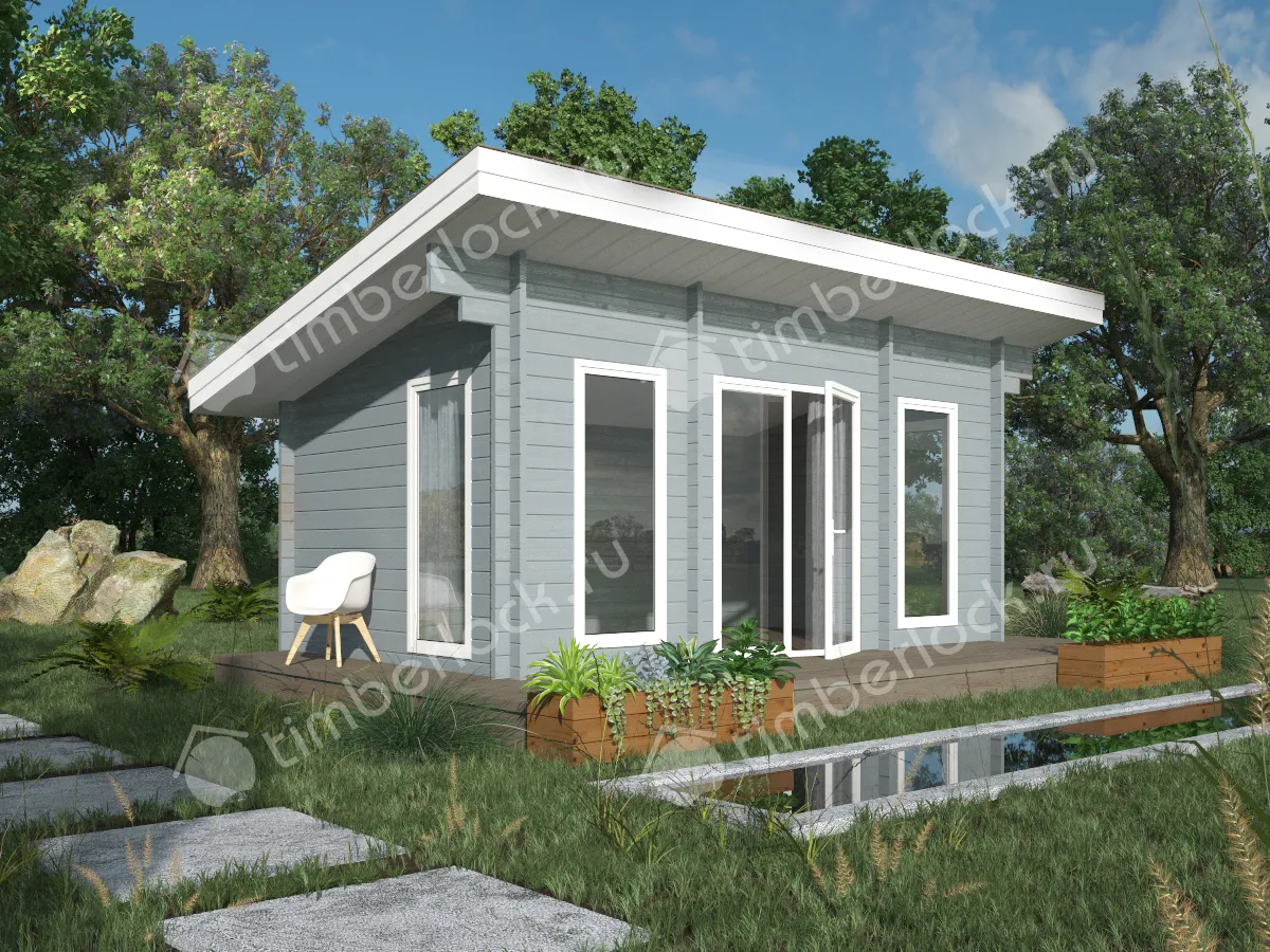 Уютная закрытая беседка для дачи с односкатной крышей.