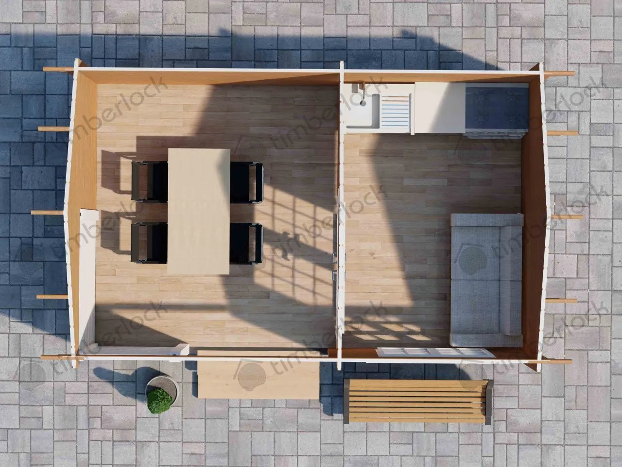 Современная беседка разделена на 2 части. На веранде можно разместиться дружной компанией, а в закрытой части организовать летнюю кухню и разместить гостей. Может использоваться также как летний садовый домик и станет отличным местом для отдыха на Вашем дачном участке в любую погоду.