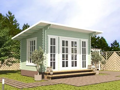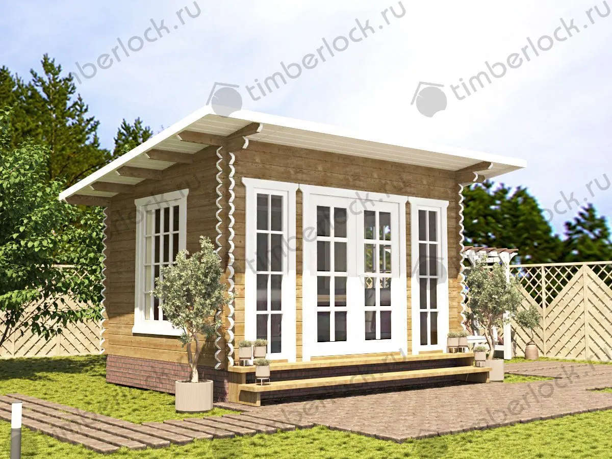 Уютная закрытая беседка для дачи с односкатной крышей и панорамным остеклением.