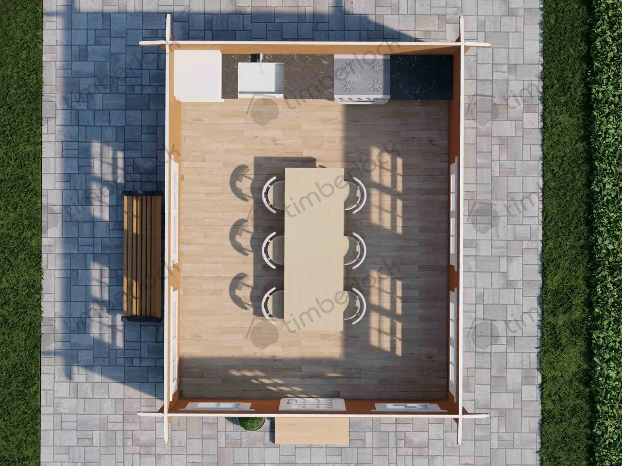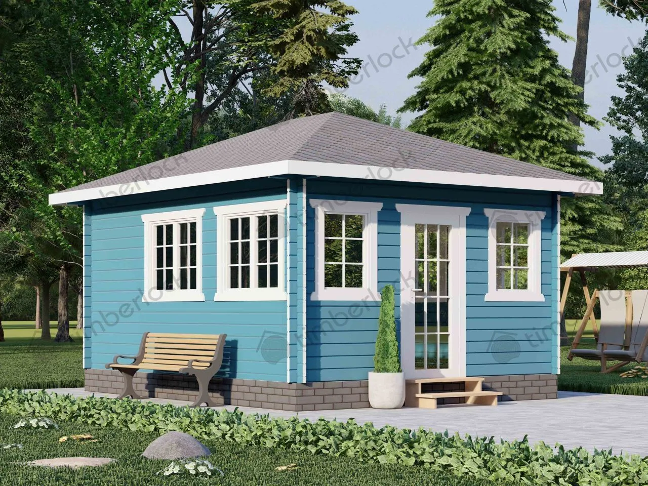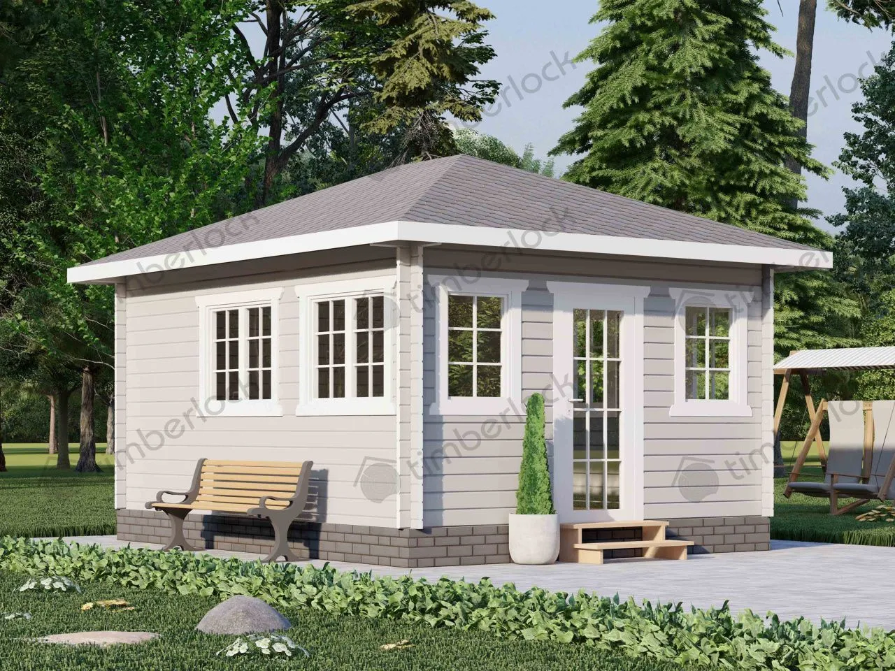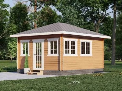 Интересный вариант закрытой беседки с 4-скатной крышей. Может использоваться также как летний садовый домик и станет отличным местом для отдыха на Вашем дачном участке в любую погоду.