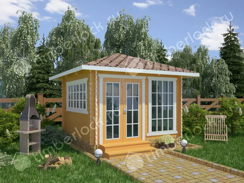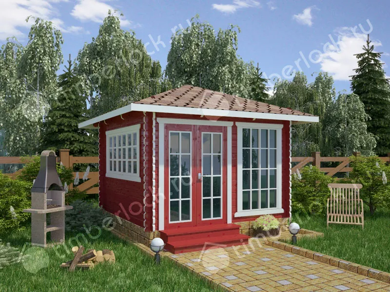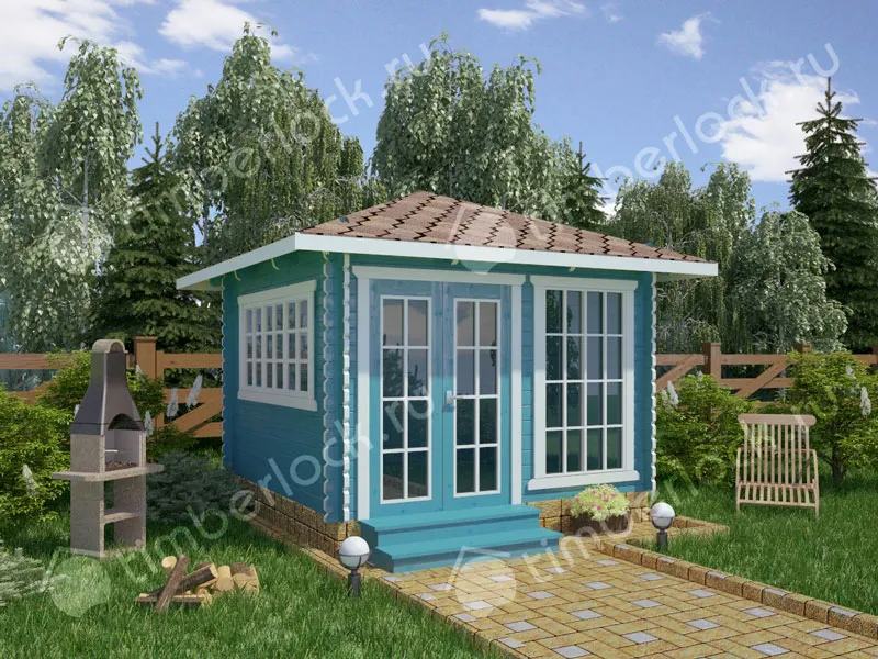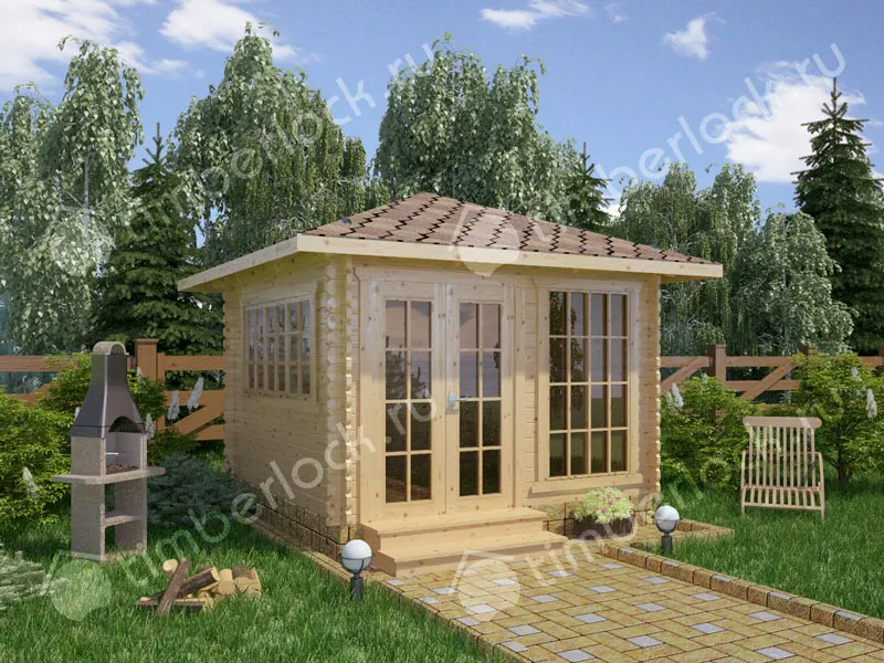 Универсальный проект загородной беседки для дачи со сквозным проходом. Общая площадь беседки 7.3м при размерах 3х3м.