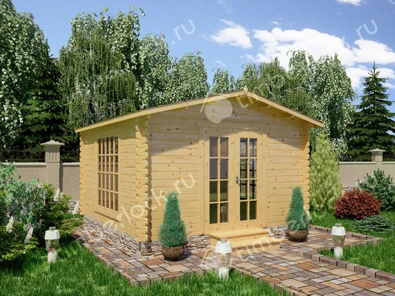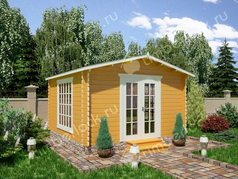 Универсальный вариант теплой беседки с витражными окнами на боковых фасадах. При размерах 4х4м и площади 13.8м2 эта беседка является отличным вариантом для организации отдыха на Вашем дачном участке.