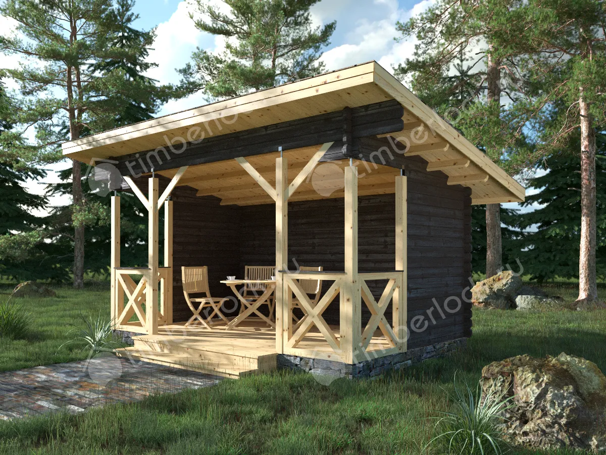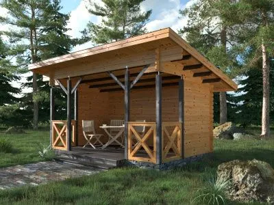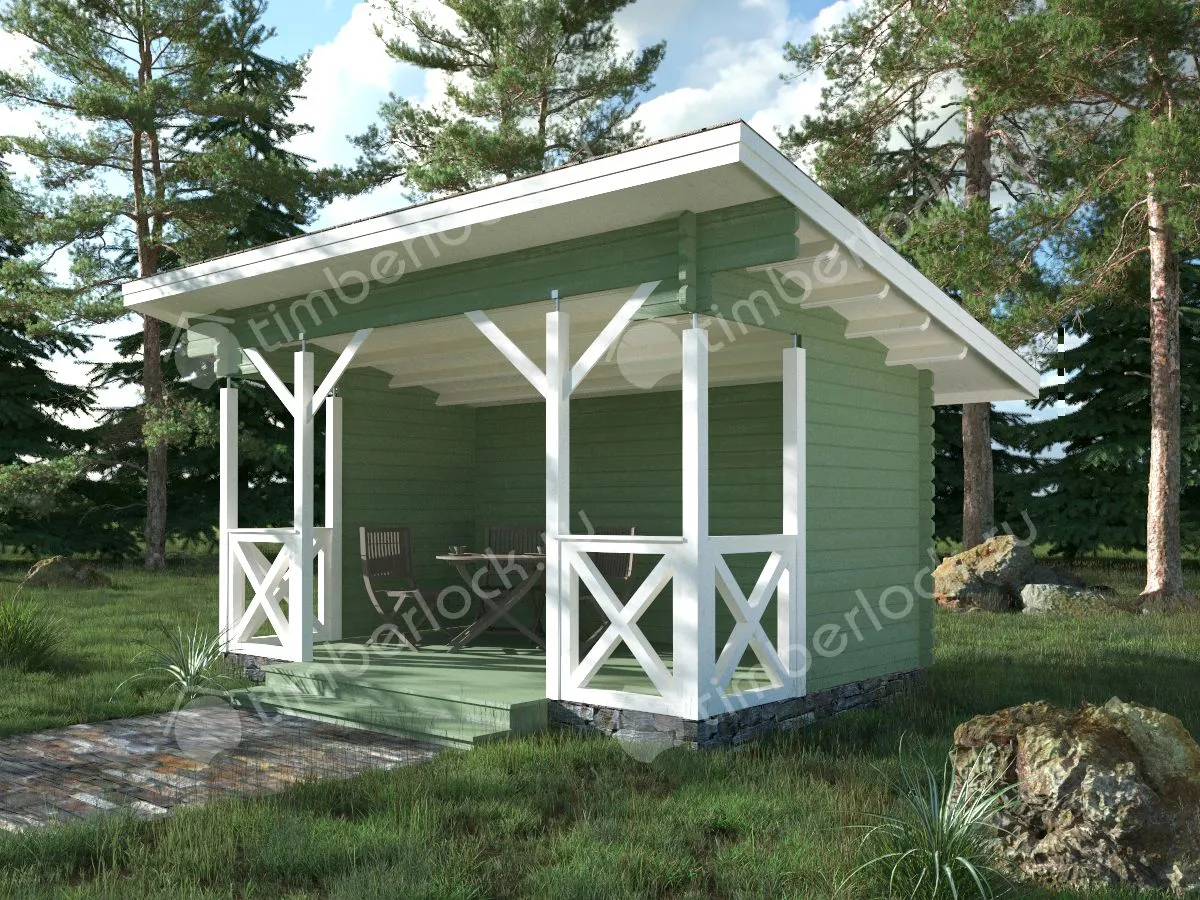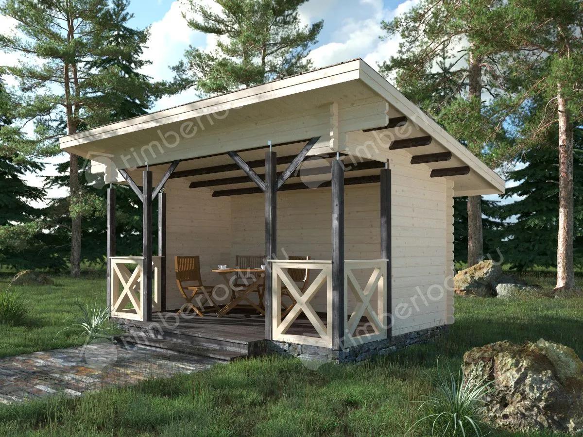Интересный вариант открытой беседки для загородного дома. Полезная площадь составляет 13м2 при размерах 3х5м.