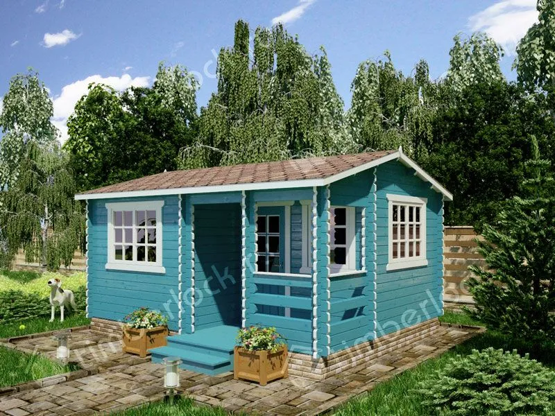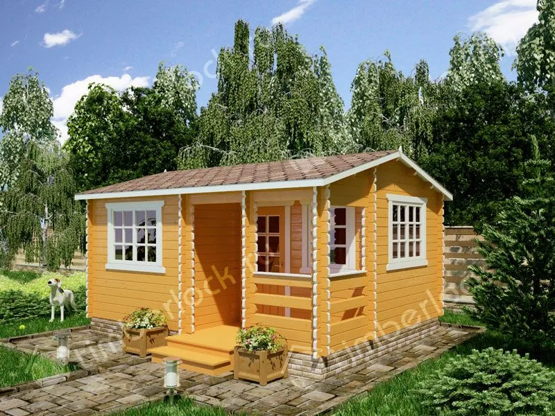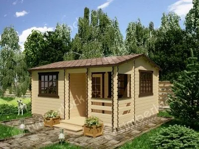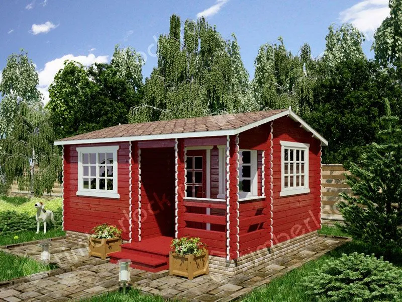 Лаконичный дачный домик с двумя раздельными комнатами, одна из которых подразумевается как комната отдыха, а вторая - кухня или хозяйственное помещение.