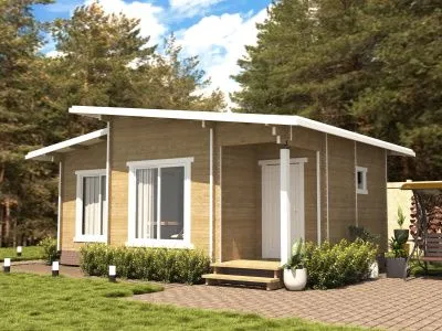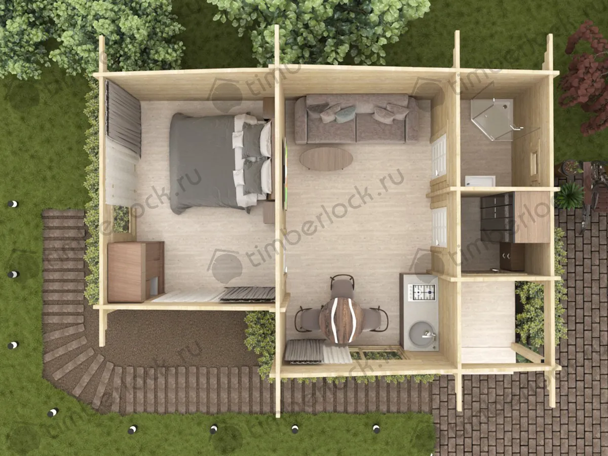 Дачный домик с террасой и двумя комнатами.