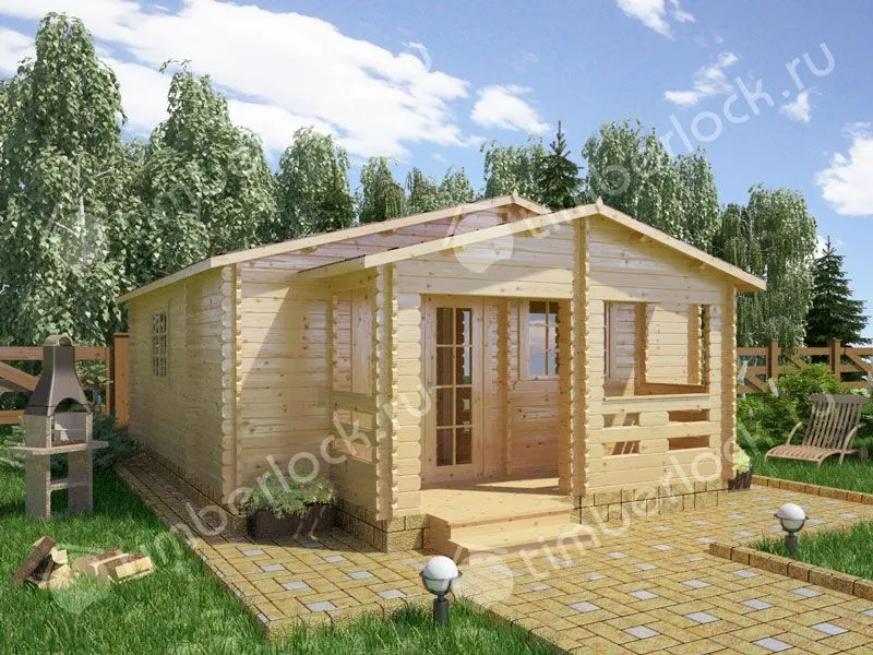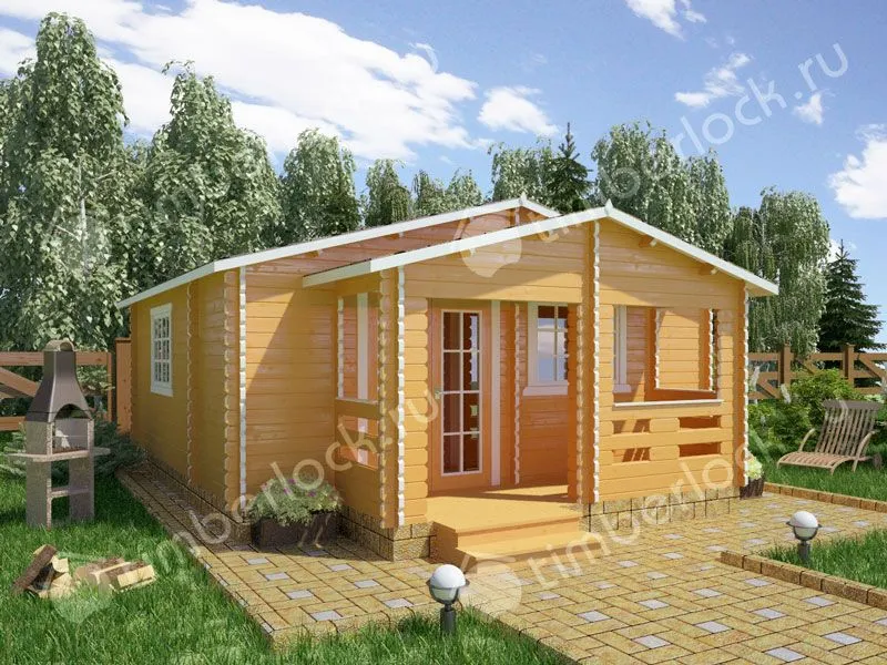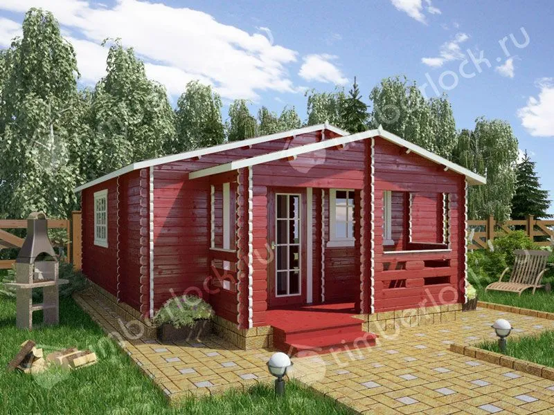 Средний дачный домик с тремя жилыми комнатами и небольшой верандой - отличное решение для организации собственного уголка на дачном участке.