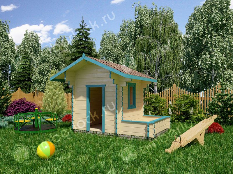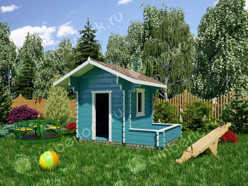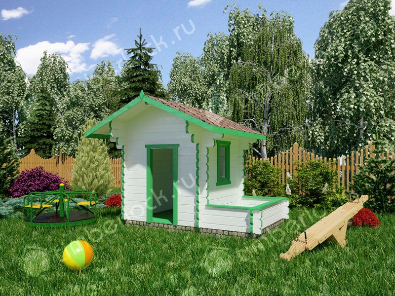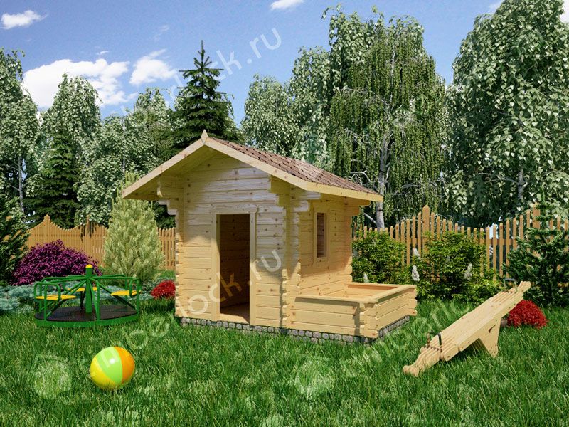 Маленький детский домик с песочницей для отдыха и игр на даче. Благодаря компактным размерам и отличной функциональности, данный проект игрового домика можно назвать одним из лидеров продаж. Помимо комнатки для игр, в проекте предусмотрена песочника, которая отделена от основного пространства и может также быть использована в качестве места для хранения игрушек.
