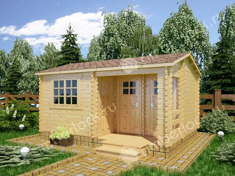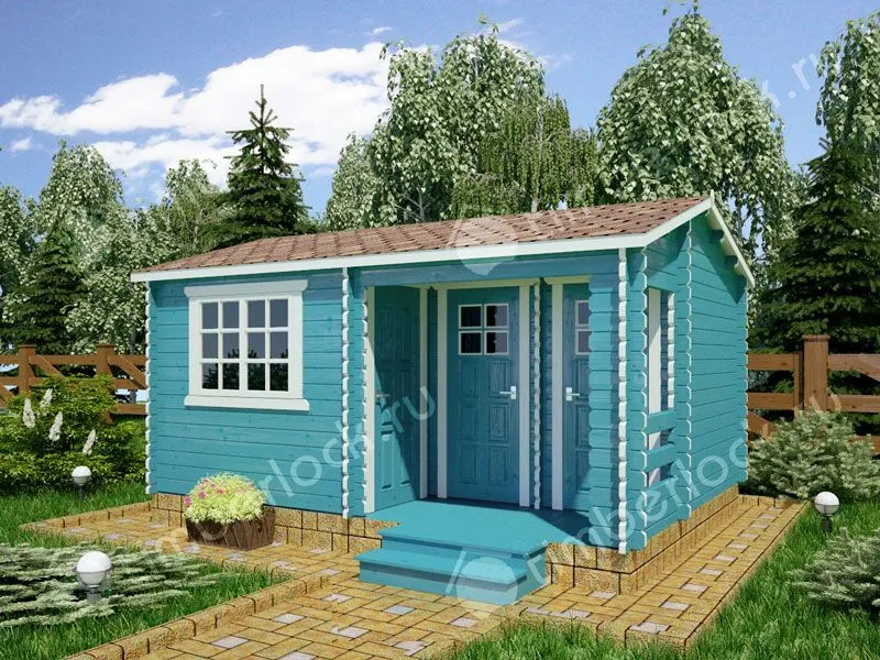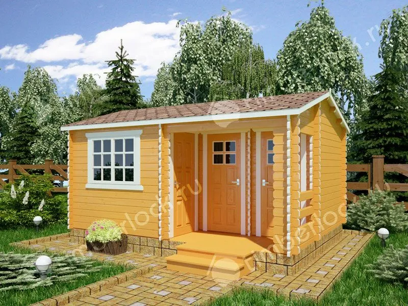 Жилой хозблок для дачного участка: комната отдыха, туалет и душ.