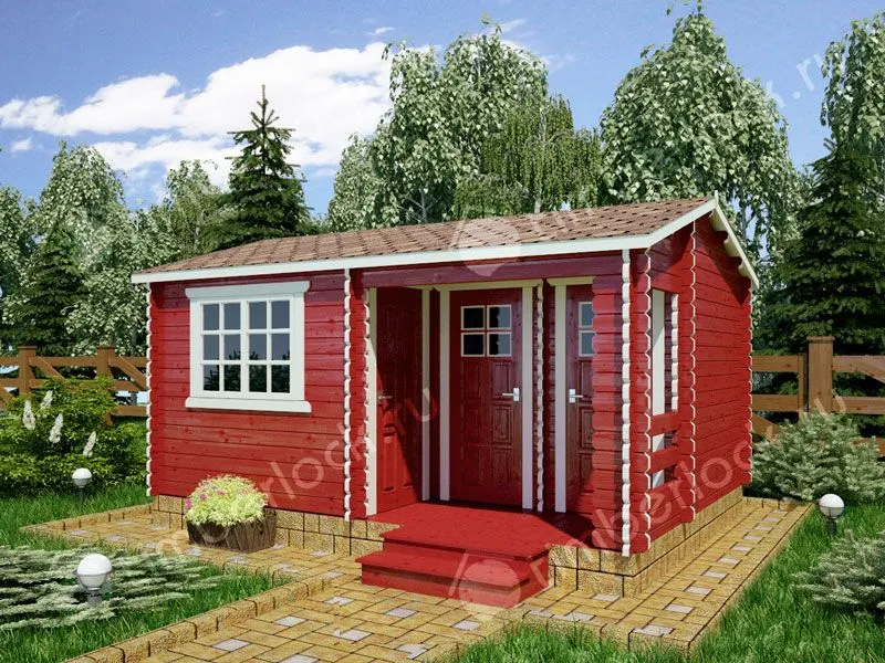 Небольшой хозяйственный блок общей площадью 16.2 м2, предназначенный для летнего отдыха на садовом участке. Проектом предусмотрено три помещения: большая комната, которая может быть использована как место для отдыха или хранения садового инвентаря и раздельные туалет с душем.