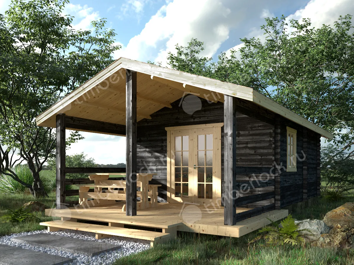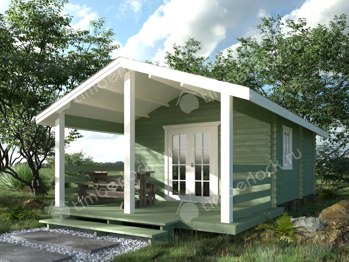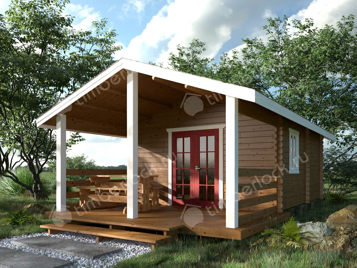 Одна из интересных новинок среди наших проектов. Благодаря продуманной планировке и наличию веранды этот проект популярен среди проектов кемпинговых домиков.
