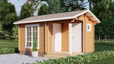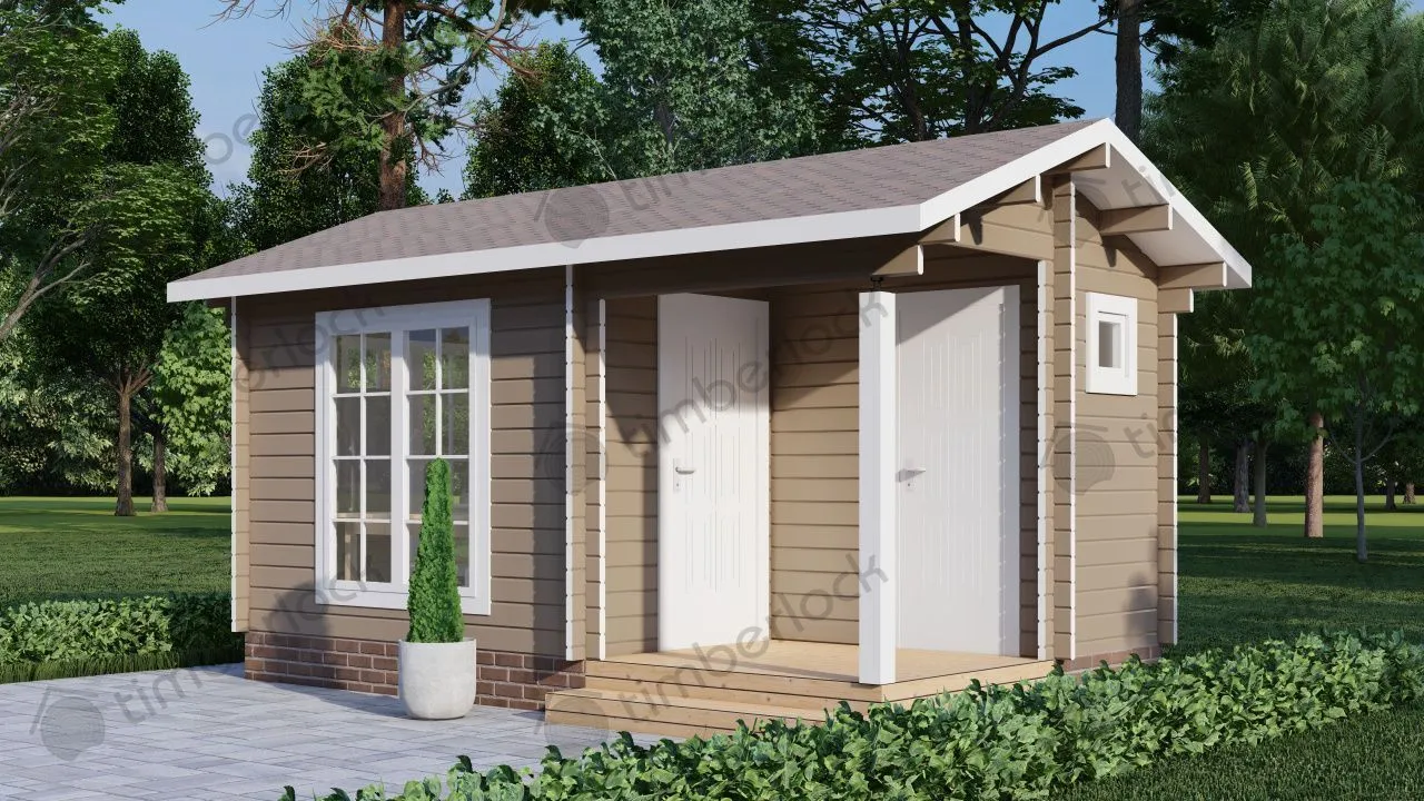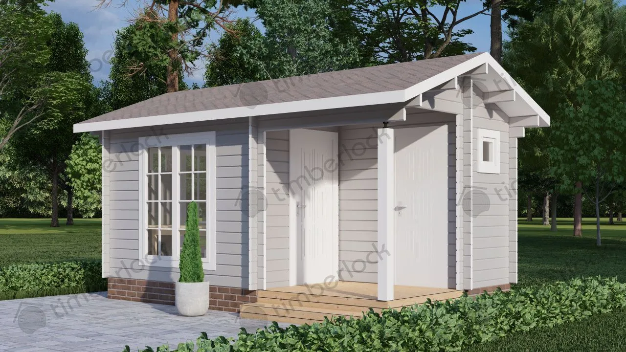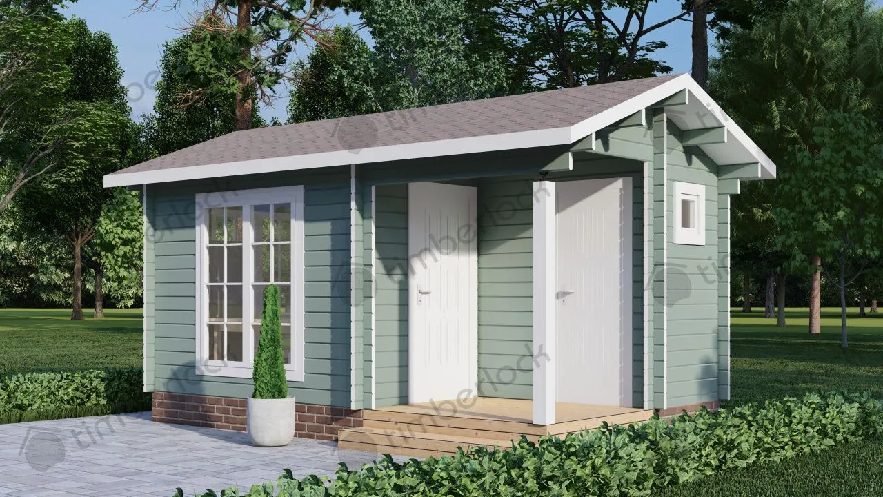 Небольшой садовый домик с панорамными окнами прекрасно впишется на дачном участке. Компактные размеры и продуманная архитектура позволяет построить домик эконом класса за небольшой срок. Его можно использовать как гостевой домик или беседку.