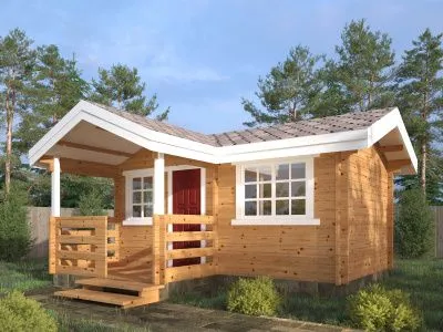 Садовый домик средних размеров с крылечком - отличное решение для небольшого дачного участка. Можно использовать как летнюю кухню или гостевой домик.