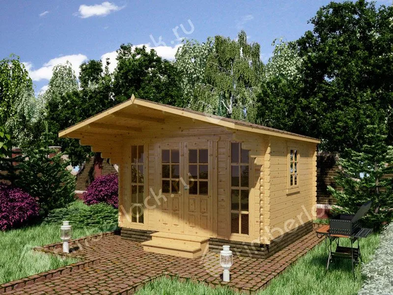 Отличный гостевой домик с витражными окнами. Просторная комната и нестандартный фасад позволяют наслаждаться каждой минутой пребывания за городом.