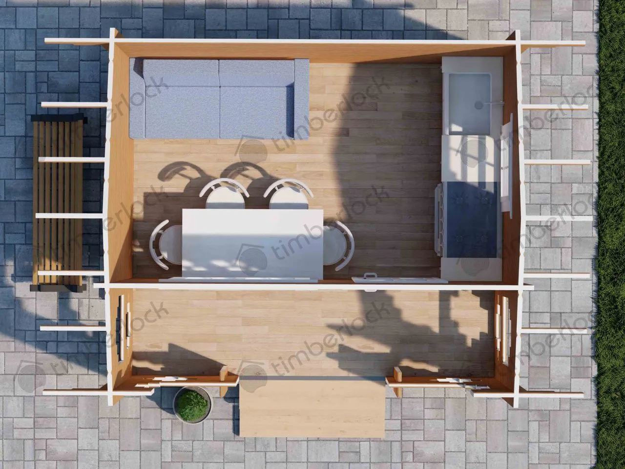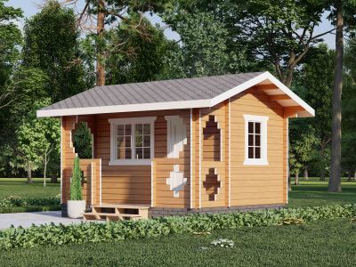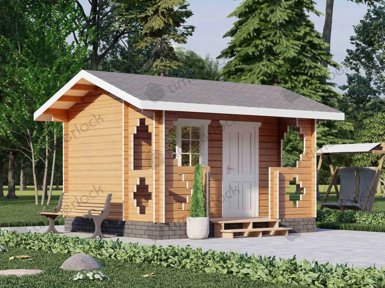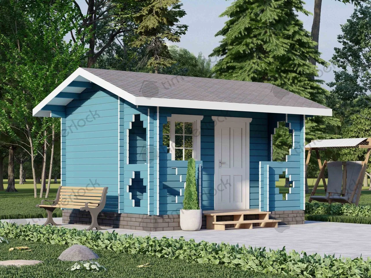 Небольшой садовый домик с крыльцом - прекрасное решение для небольшого дачного участка. Можно использовать для временного проживания в тёплое время года или как гостевой домик.
