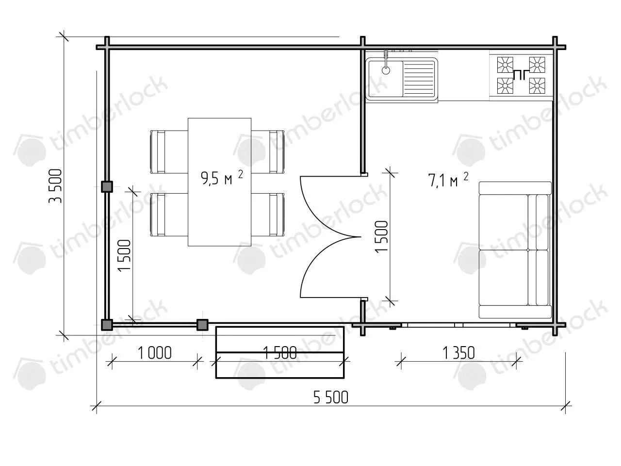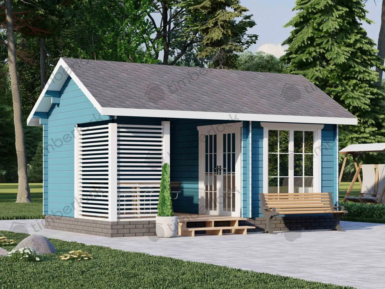 Садовый домик средних размеров с верандой - прекрасное решение для небольшого дачного участка. Можно использовать для временного проживания в тёплое время года, как летнюю кухню или как гостевой домик.