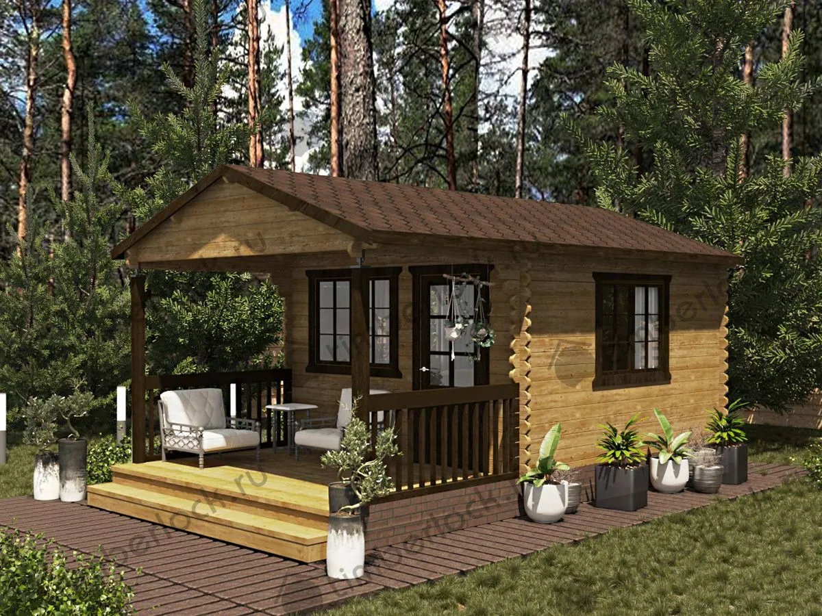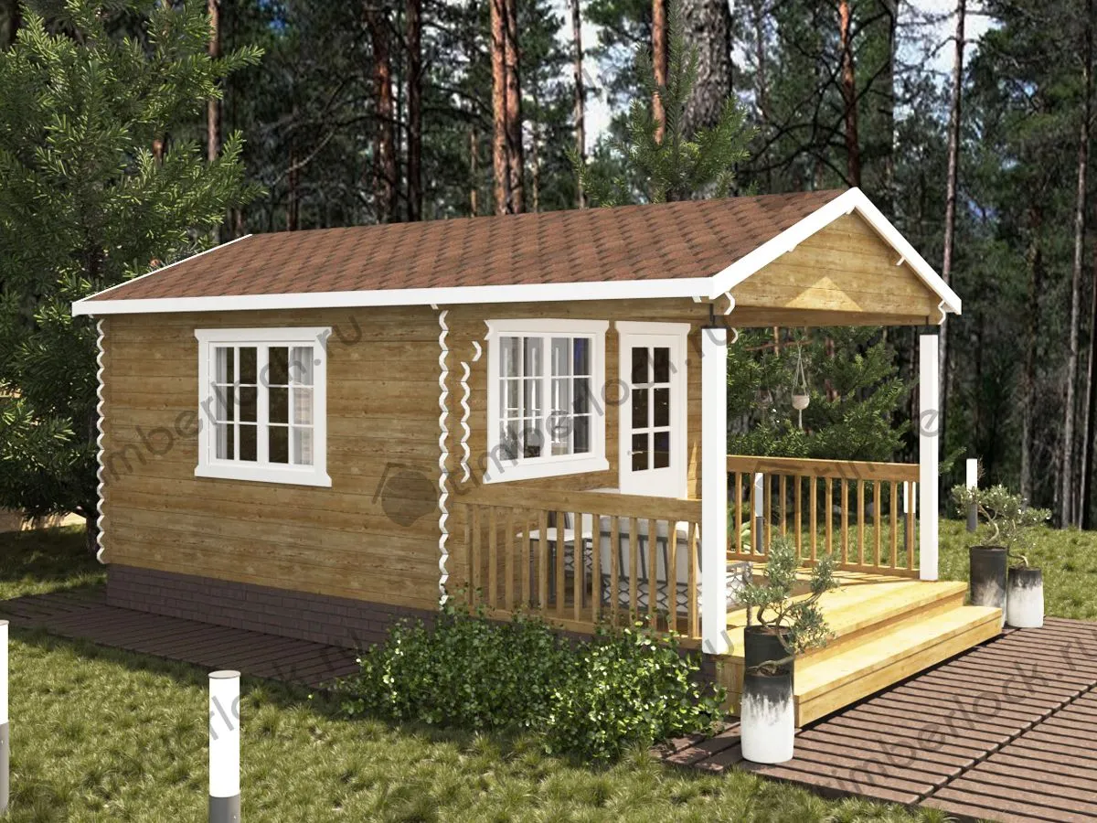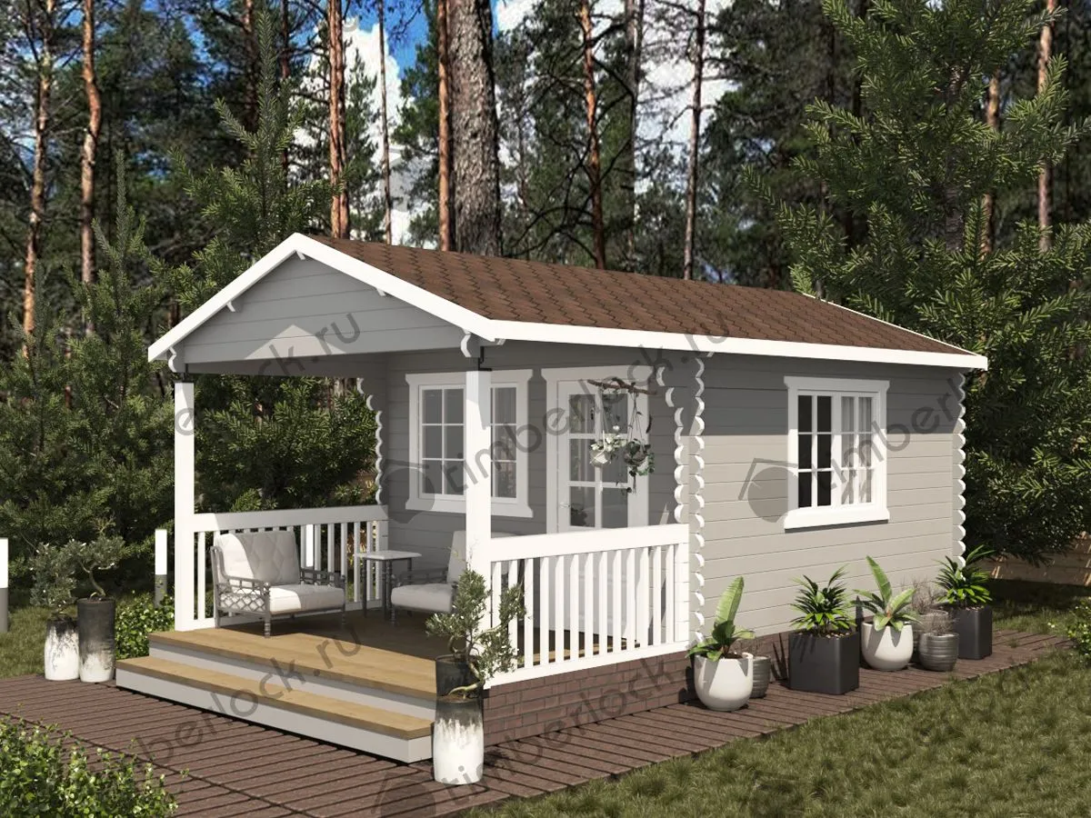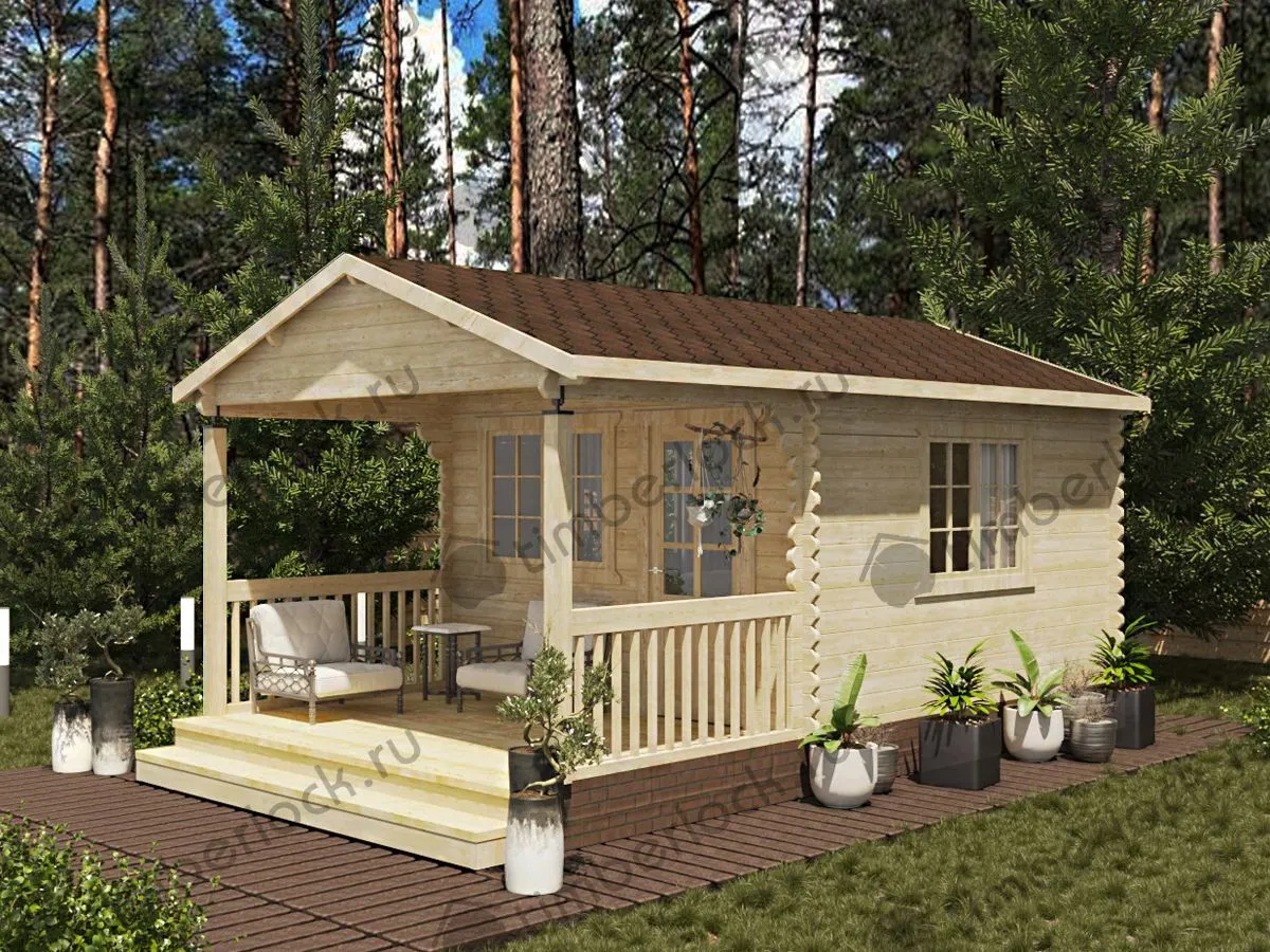 Небольшой садовый домик с верандой - отличное решение для дачного участка. Закрытое помещение можно использовать как комнату отдыха, а веранду как летнюю кухню.