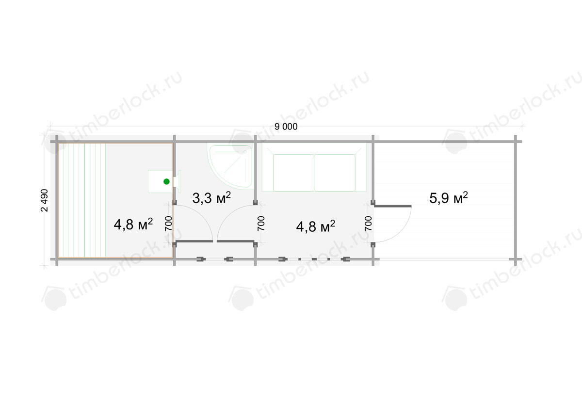 Не входит в стоимость:Обустройство парилки (2.1м х 2.1м, 4м2) - 405 000 руб.