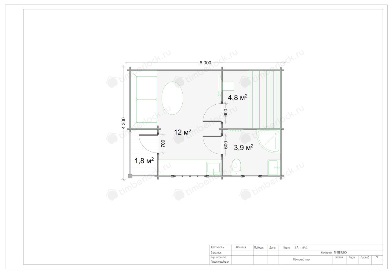 Не входит в стоимость:Обустройство парилки (2.1м х 2.1м, 4м2) - 405 000 руб.
