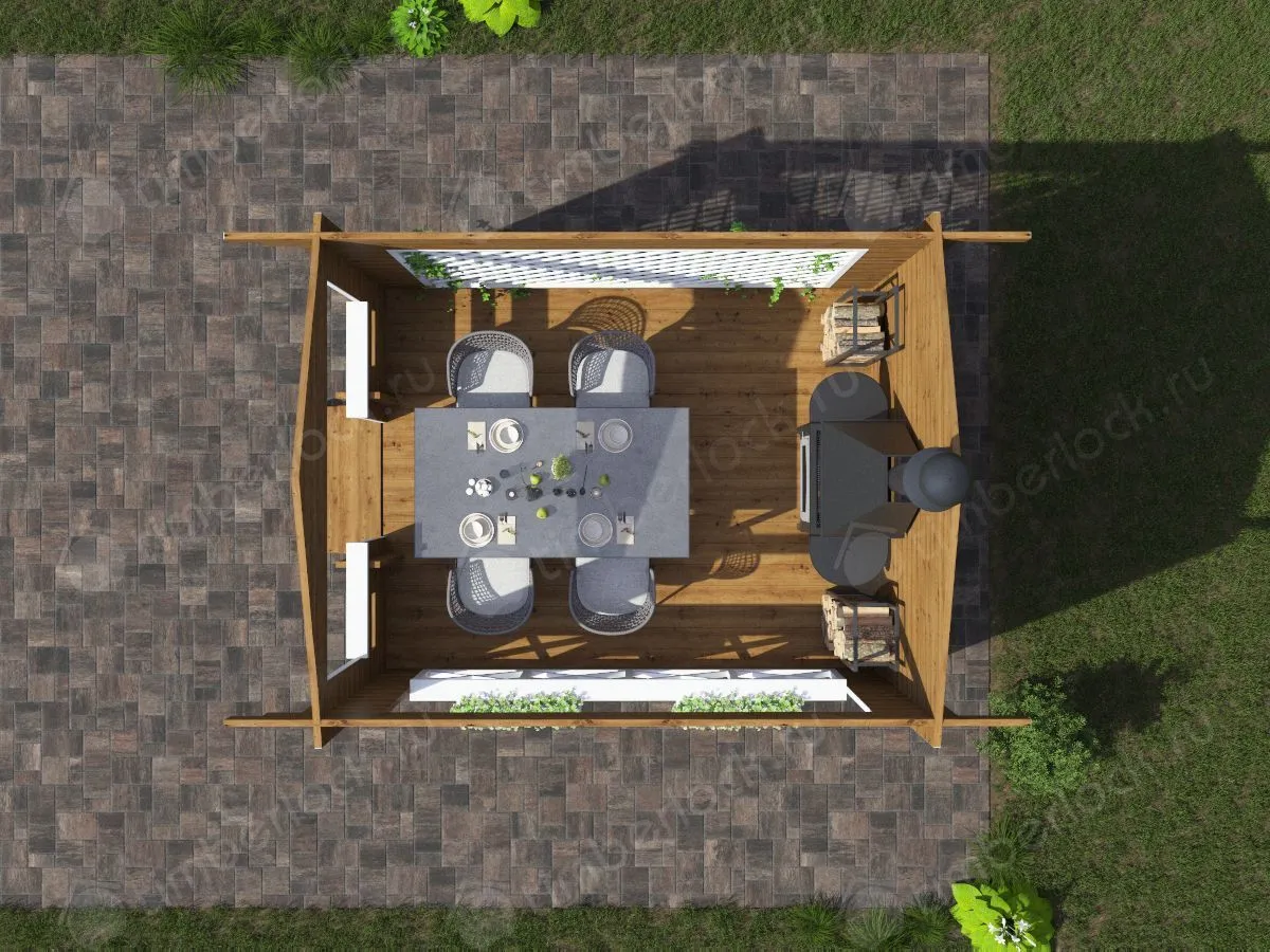 Удобная открытая беседка размером 3х4м - отличное решение для отдыха на природе. В беседке может разместиться до 6-ти человек. Благодаря шпалере в беседке комфортно находиться в жаркий день, так как будет проходить рассеянный свет. Также в ней можно организовать зону барбекю или небольшую летнюю кухню.