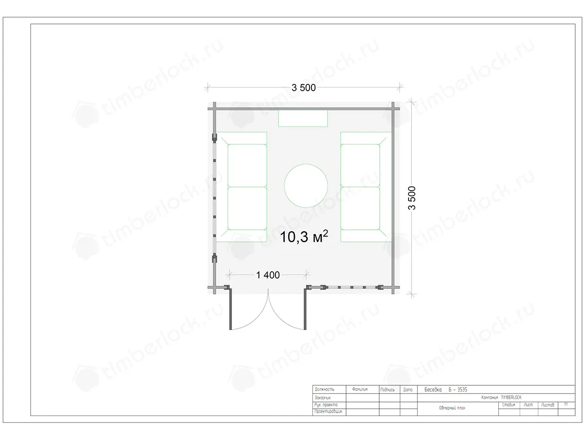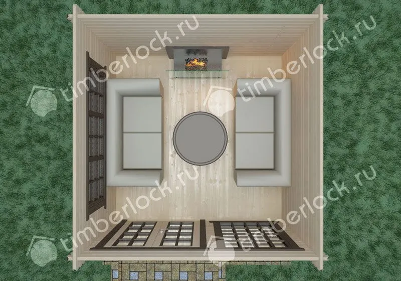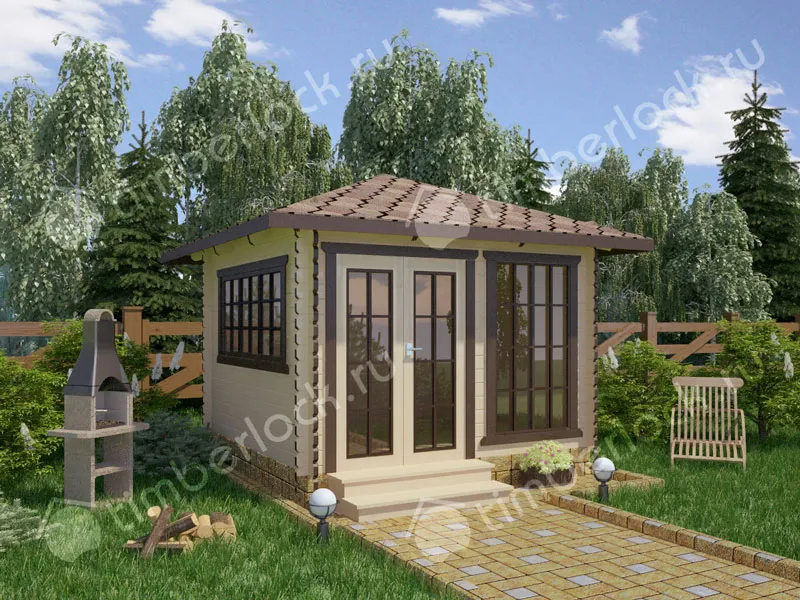 Универсальный проект загородной беседки для дачи со сквозным проходом. Общая площадь беседки 7.3м при размерах 3х3м.