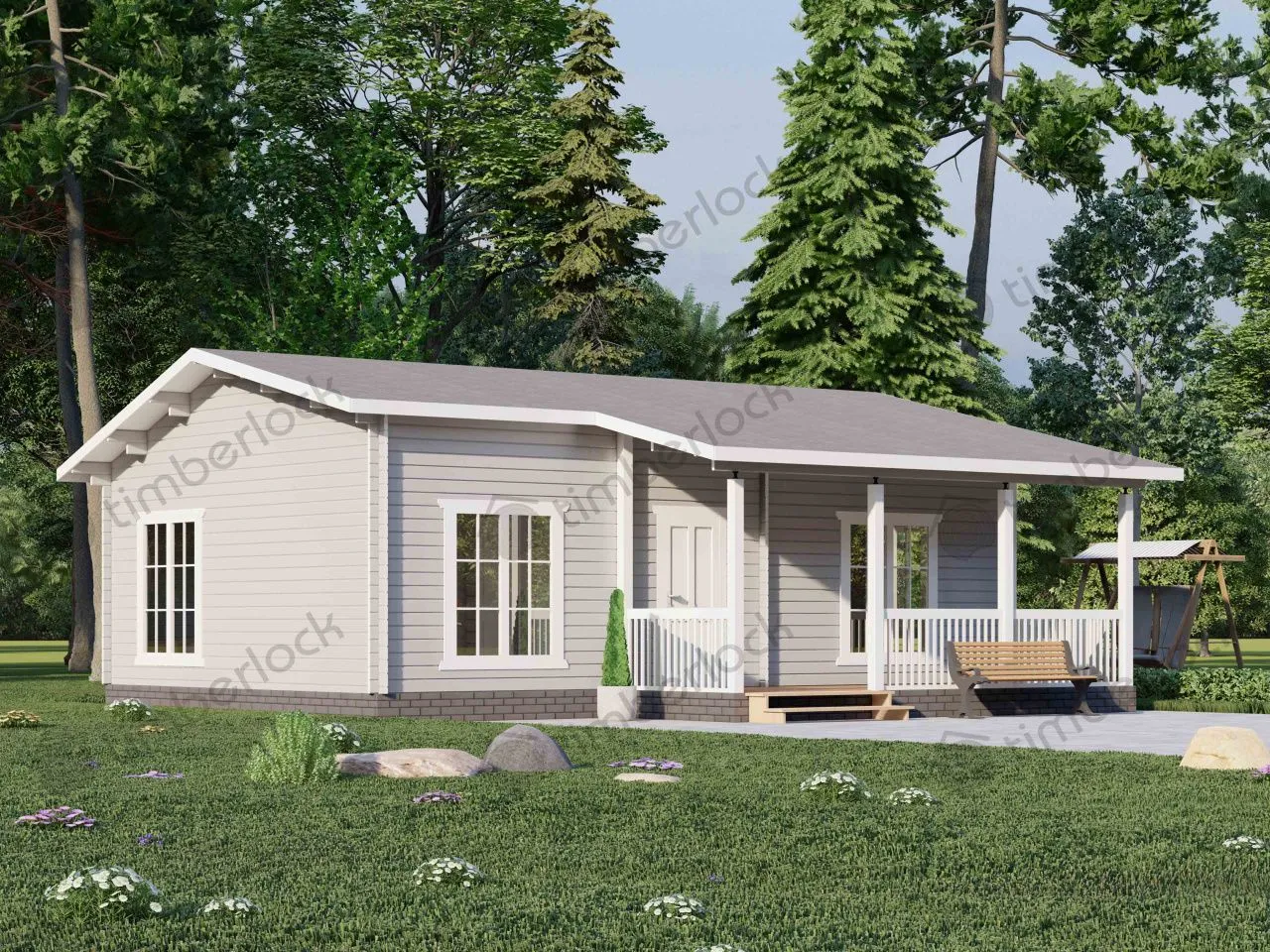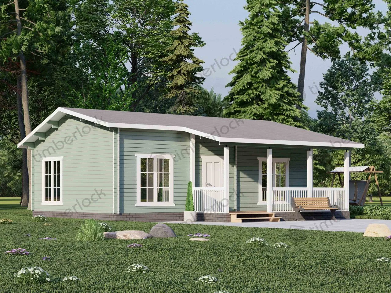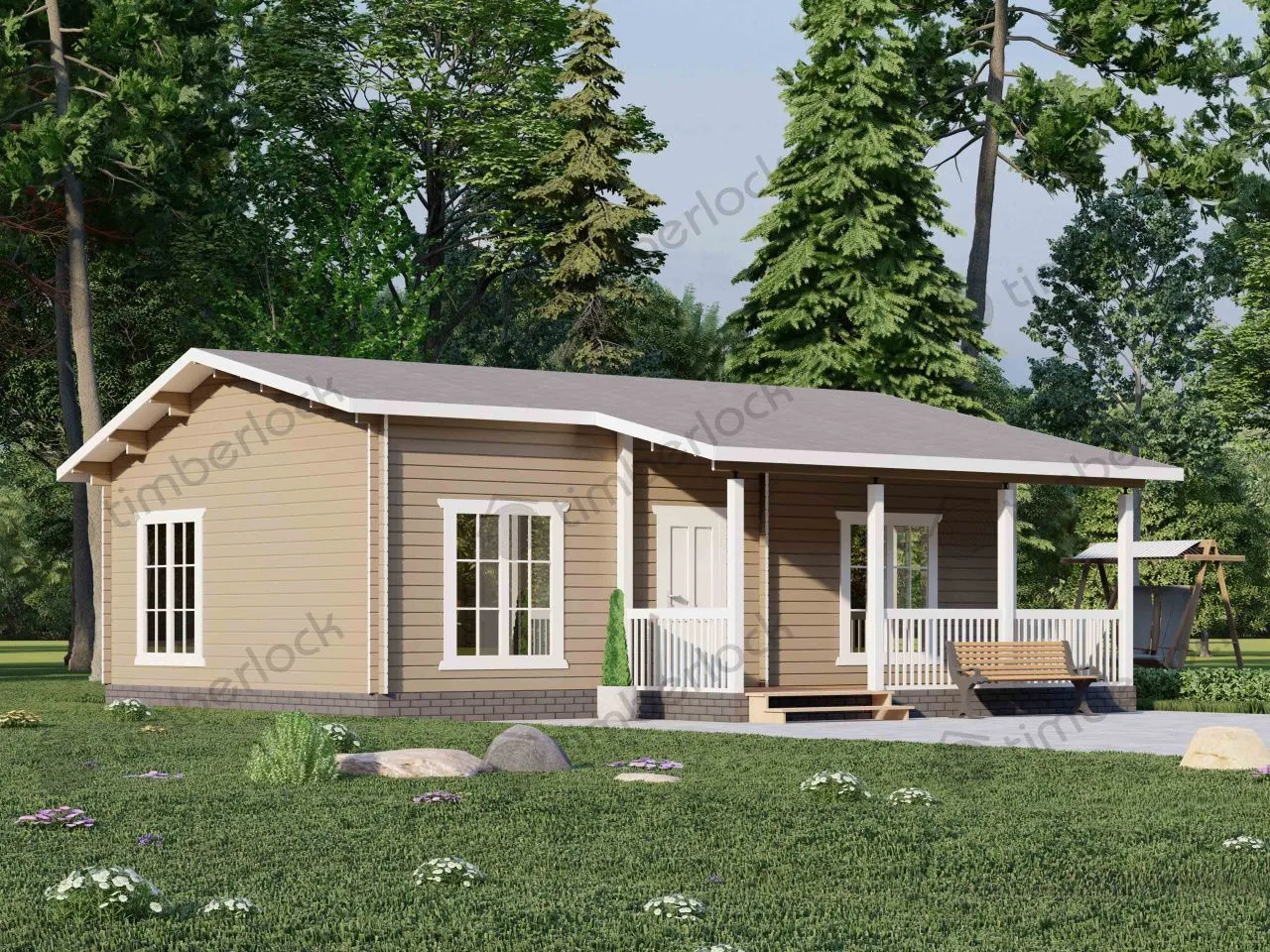 Дачный домик с террасой, гостиной и двумя спальнями.
