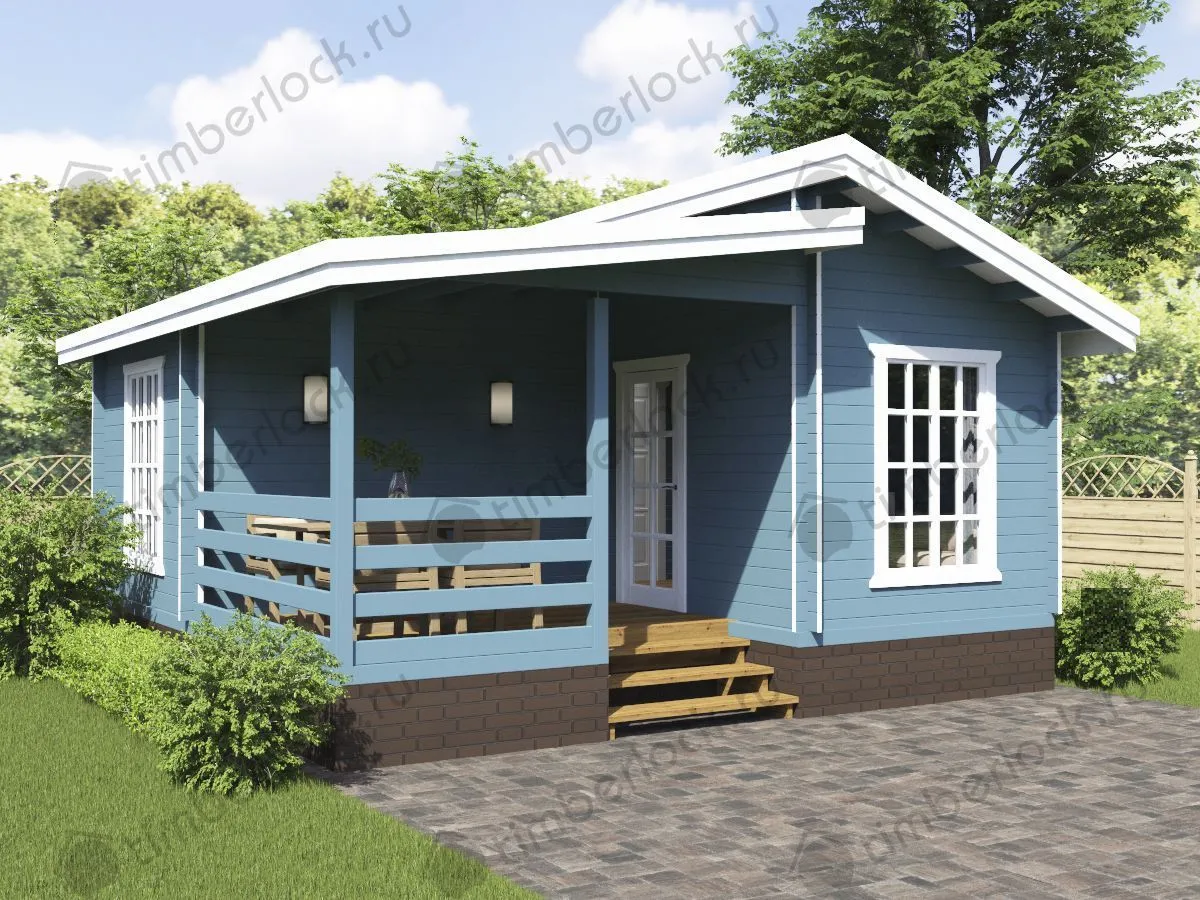Проект дачного домика с одной спальней. Такая планировка позволяет комфортно разместиться небольшой семье до 3-х человек .
