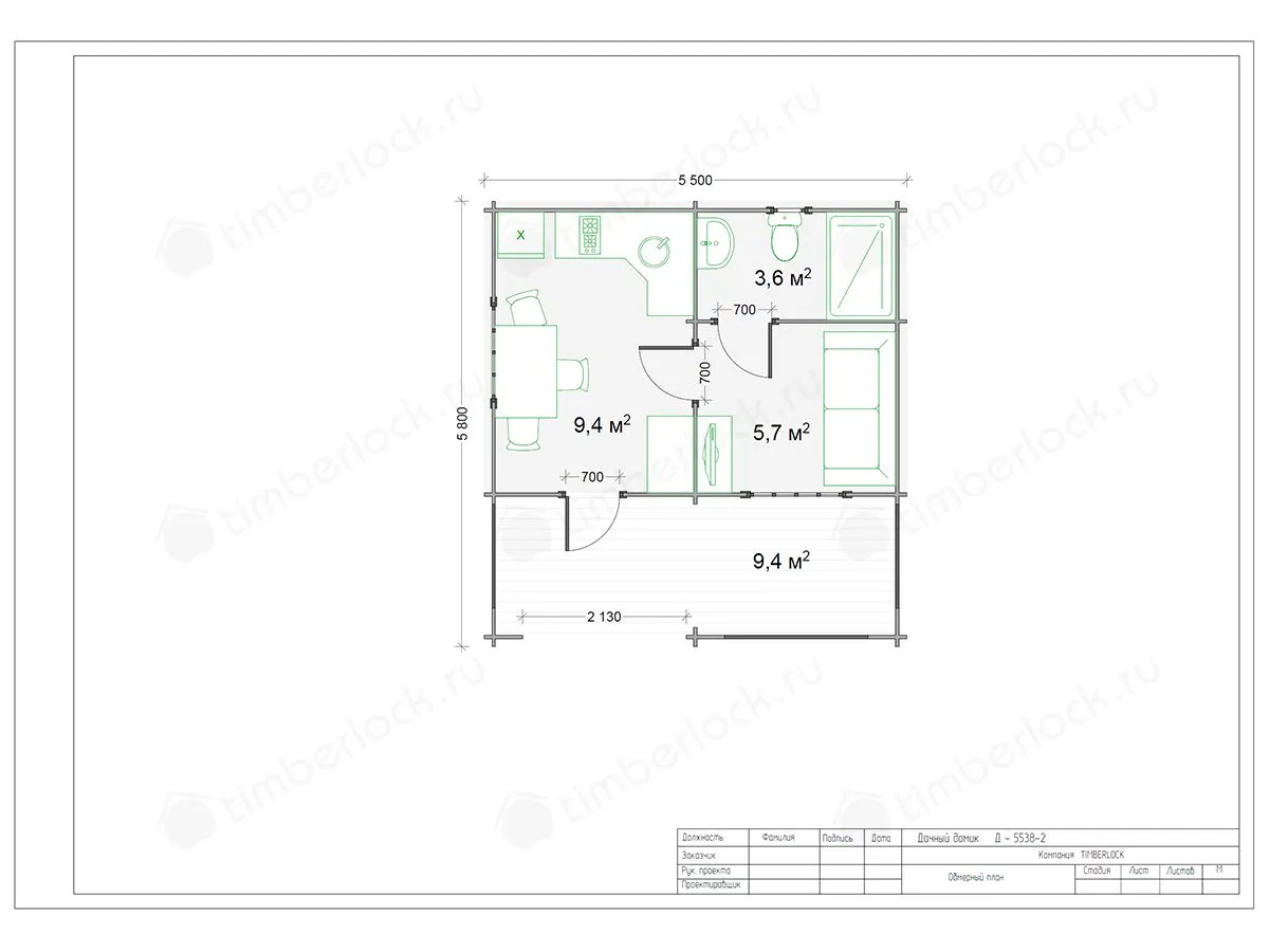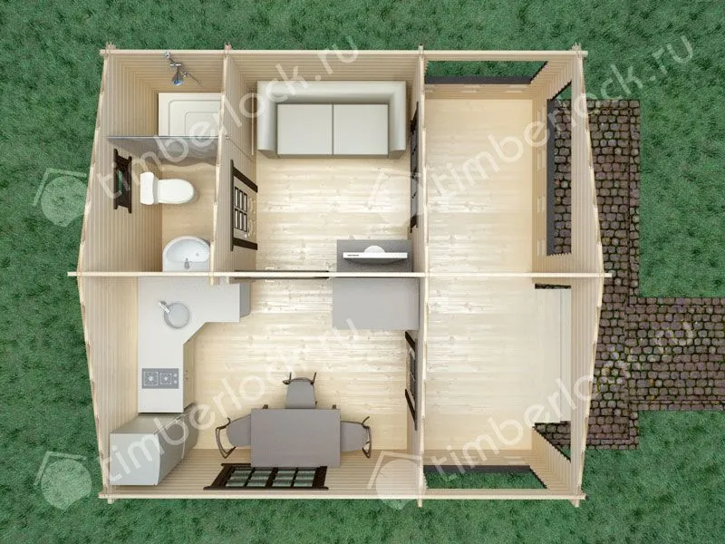 Эргономичный дачный домик с полноценной жилой зоной: гостиная-кухня, спальня, санузел.