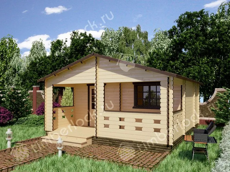 Эргономичный вариант дачного домика, в котором предусмотрено все для комфортного пребывания на даче. Веранда для отдыха летними вечерами, кухня-столовая, где может разместиться вся семья, спальня и санузел.