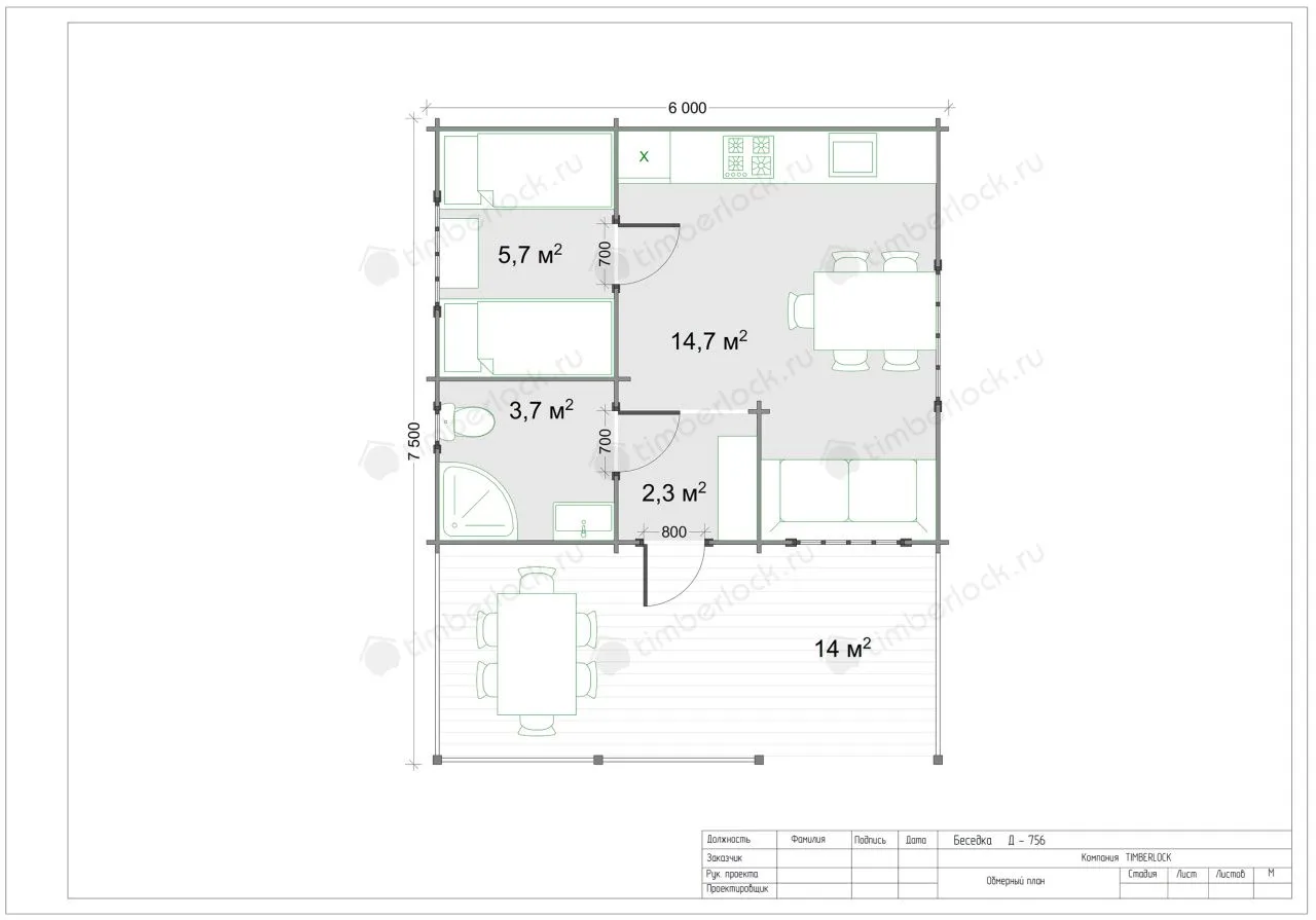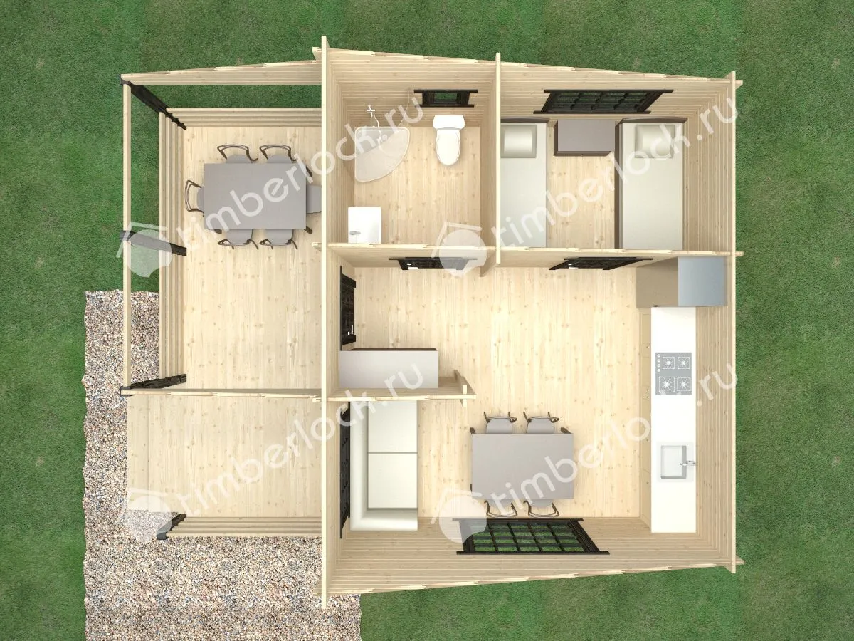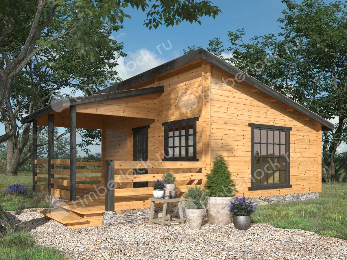 Большой дачный дом с двумя спальнями, гостиной, кухней, санузлом и верандой создаст уют на вашем участке.