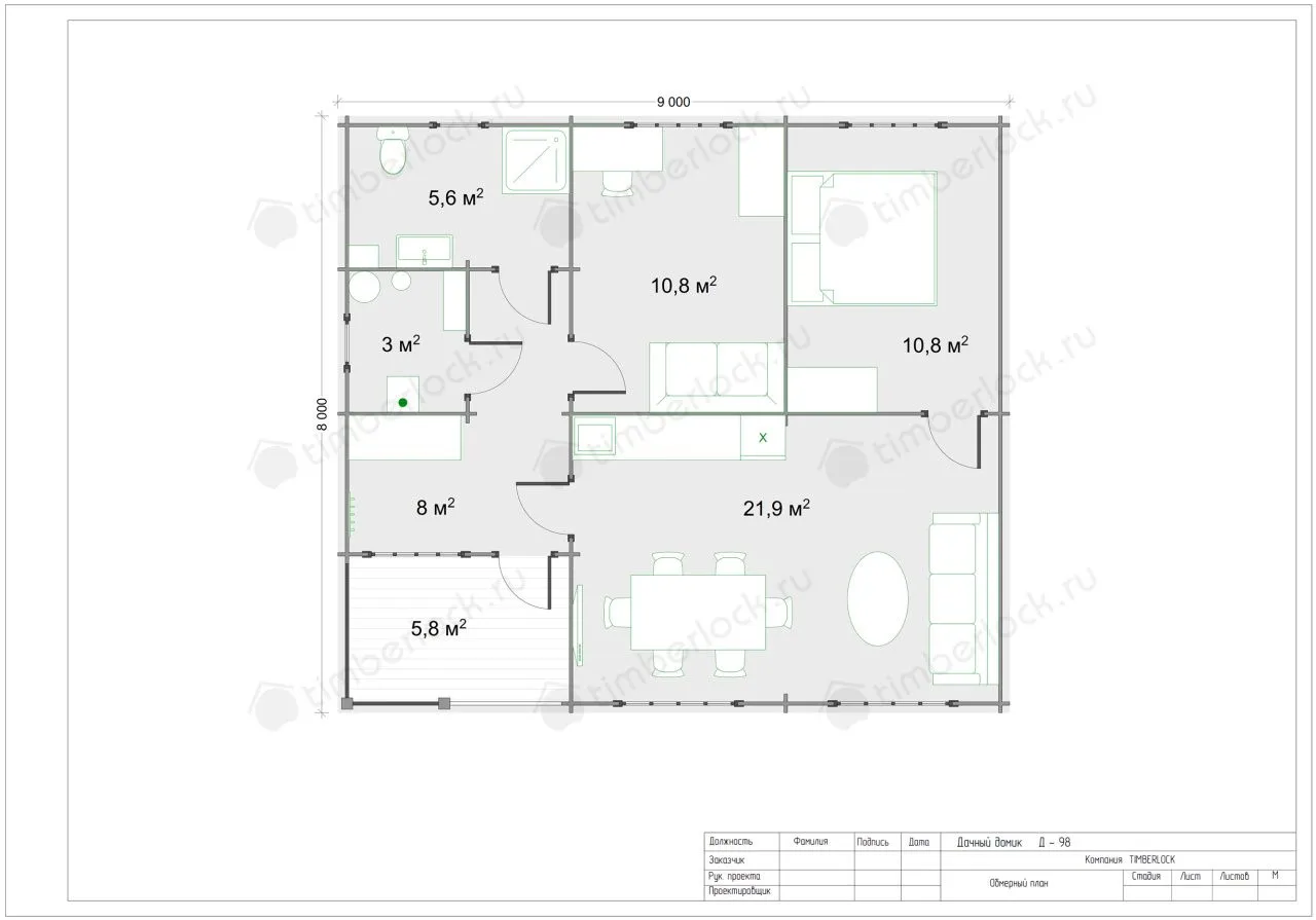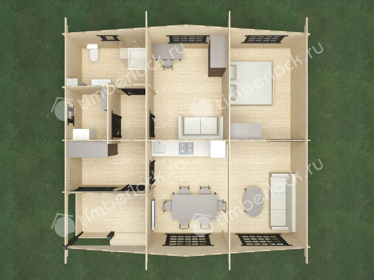 Большой дачный дом с двумя спальнями, гостиной, кухней, санузлом и верандой создаст уют на вашем участке.
