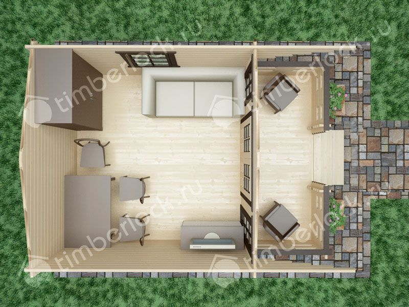 Один из самых популярных проектов садовых домиков. Благодаря продуманной планировке и наличию веранды этот проект остается лидером продаж в нашей компании.