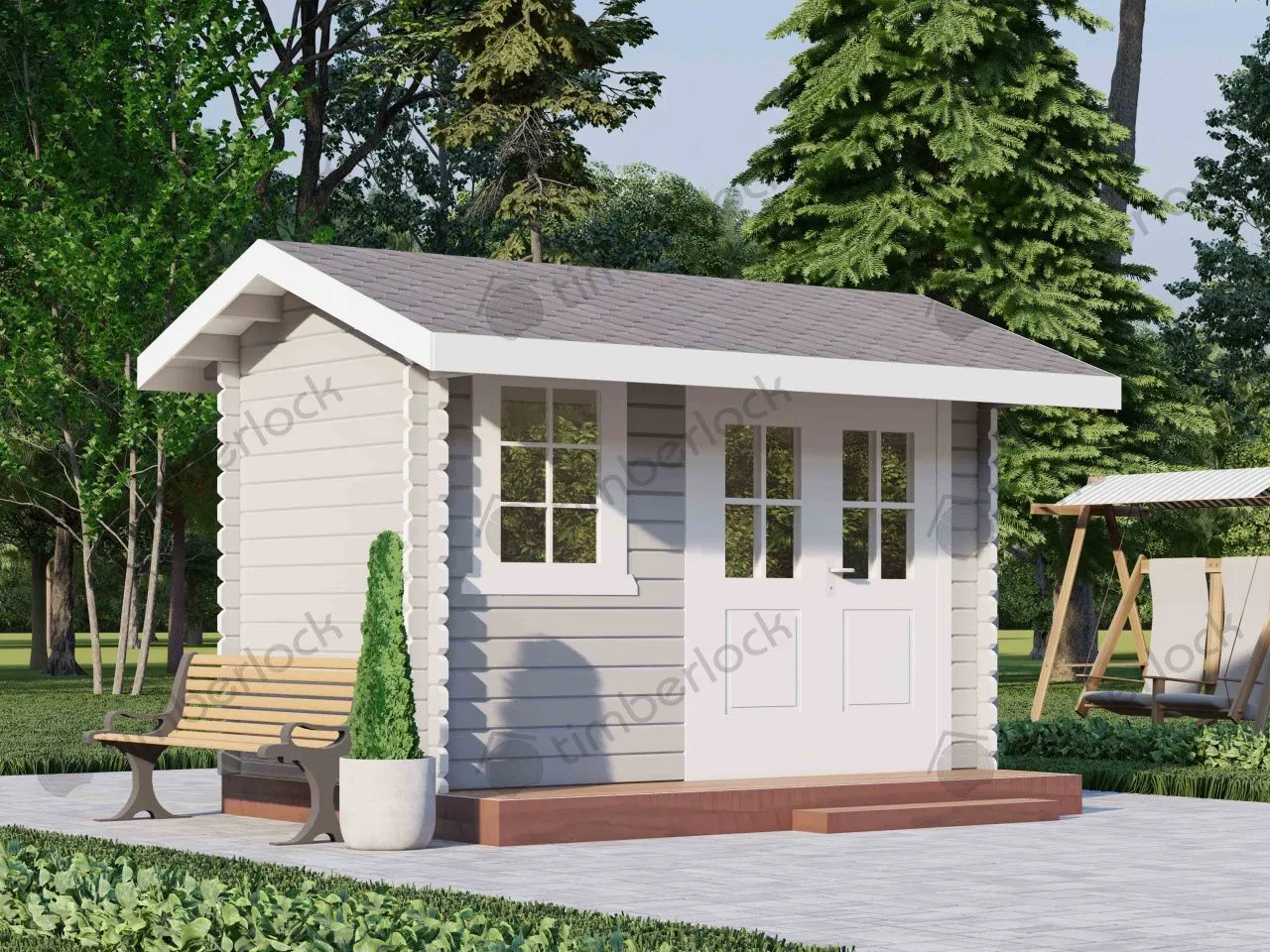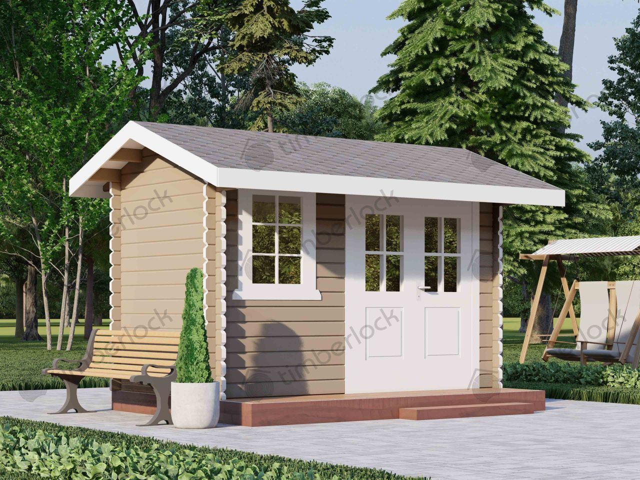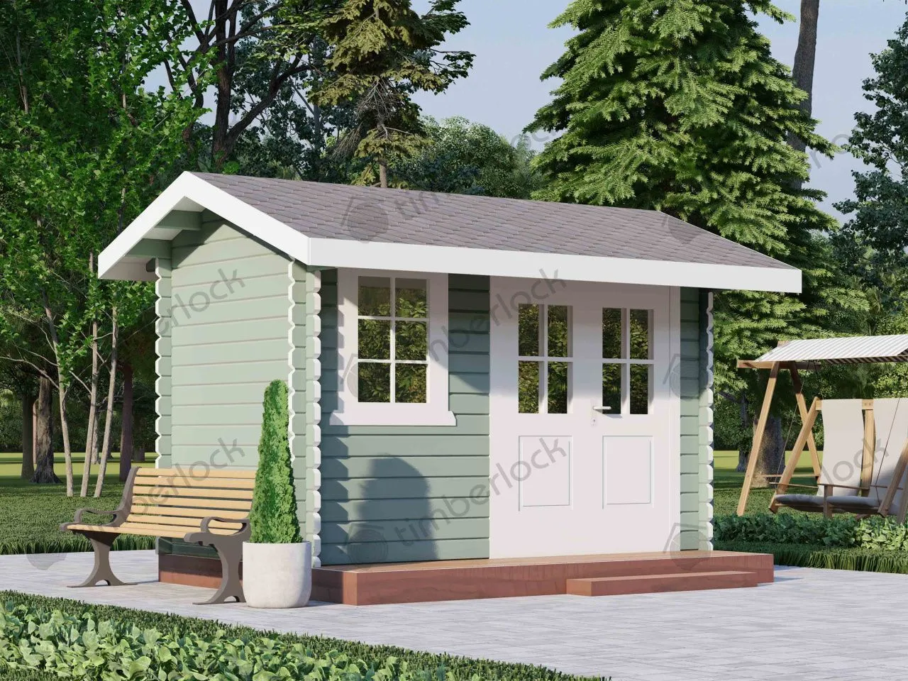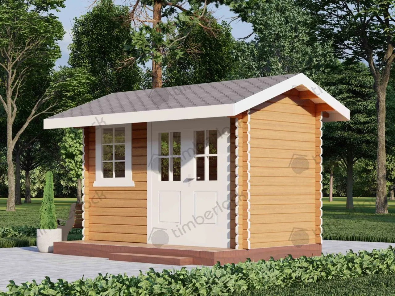 Небольшой хозблок, который может совмещать в себе туалет, душ. Также может быть использован для хранения садового инвентаря.