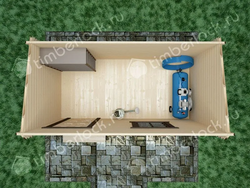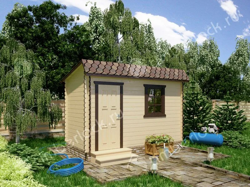 Небольшой сарай для ранения садового инвентаря общей площадью 6.3 м2 при размерах 4 х 2 м. Проектом предусмотрена запирающаяся дверь и полноразмерное окно.