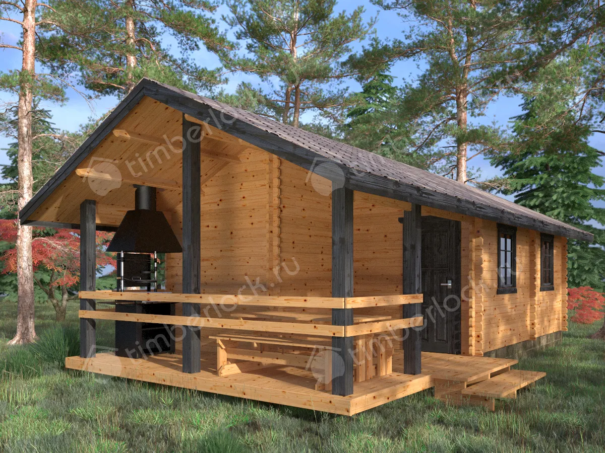 Одна из интересных новинок среди наших проектов. Благодаря продуманной планировке и наличию веранды этот проект популярен среди проектов кемпинговых домиков.
