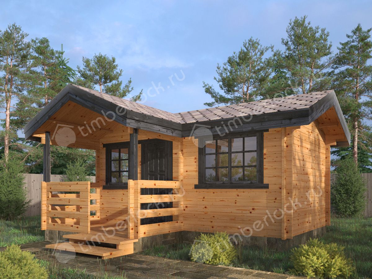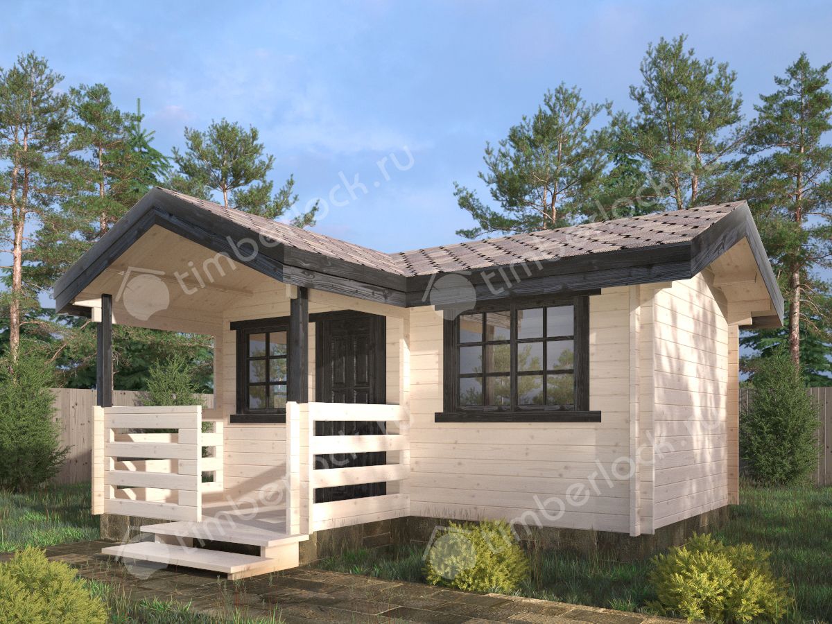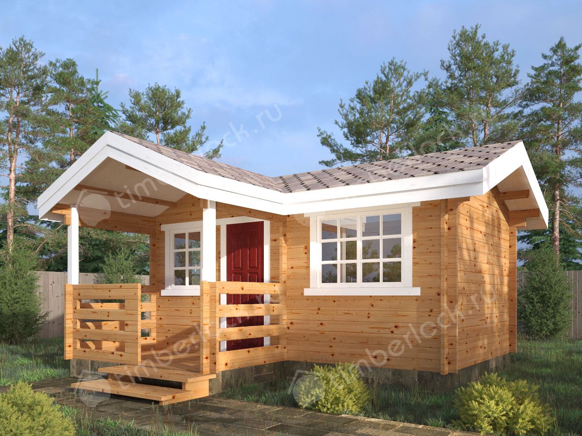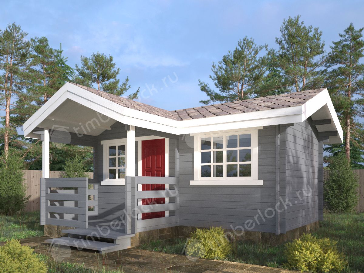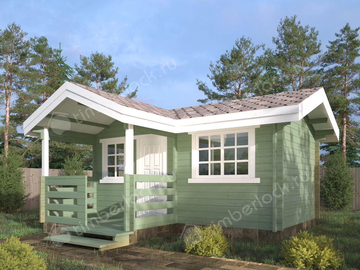 Садовый домик средних размеров с крылечком - отличное решение для небольшого дачного участка. Можно использовать как летнюю кухню или гостевой домик.