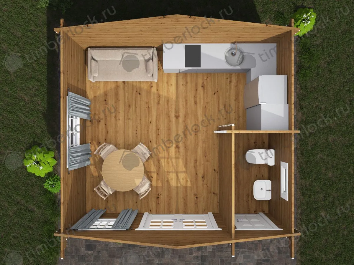 Небольшой садовый домик прекрасно впишется на дачном участке. Компактные размеры и продуманная архитектура позволяет построить домик эконом класса за небольшой срок.