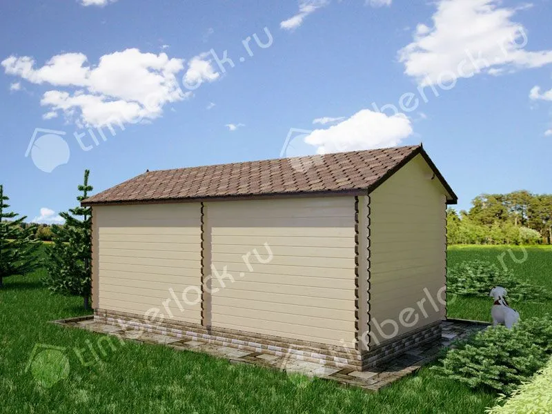 Двухсекционный садовый домик с открытой и закрытой зоной. Закрытое помещение можно использовать как комнату отдыха или летнюю кухню, открытую зону - как место для хранения инвентаря или веранда.
