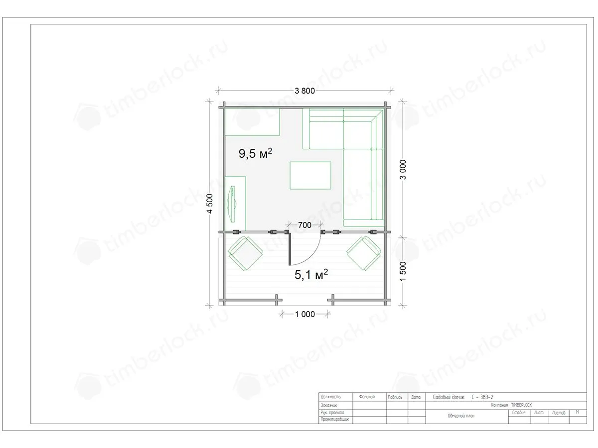 Садовый домик с верандой 3.8м х 3м +1.5м веранда.