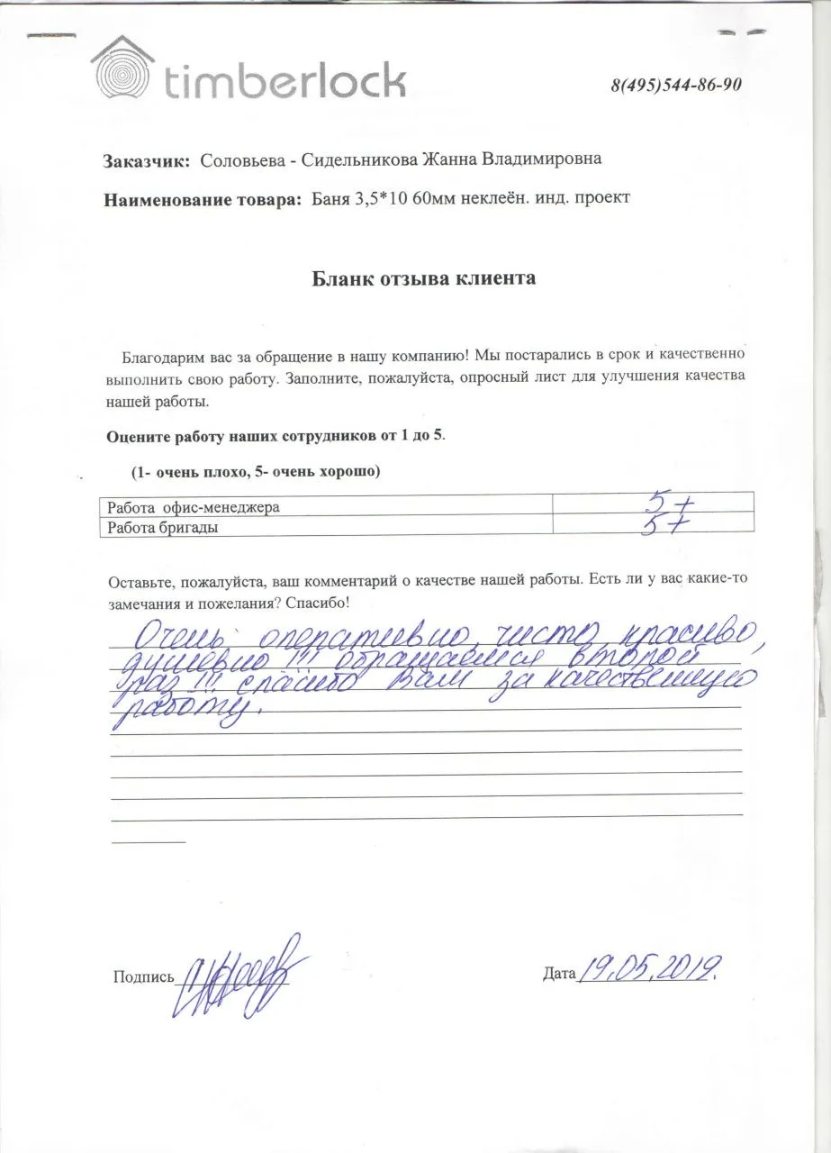 Мы будем рады, если Вы оставите свой отзыв о сотрудничестве с нами.