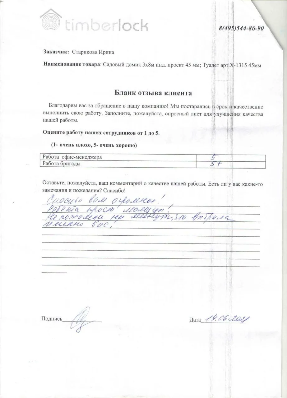 Второй раз заказываем у них домик. Первый был заказан 5 лет назад и до сих пор, как новый. Оба домика по индивидуальным размерам и "хотелкам". Заказать можно удаленно, что очень удобно. По цене - самые выгодные, что 5 лет назад, что сейчас. Бригада аккуратная, вежливая, приехали - собрали - уехали. Мусор весь забрали.