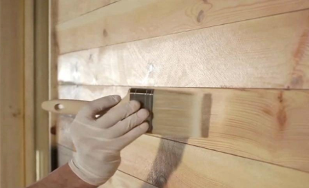 На наружные стены антисептики наносят при положительной температуре и только на подсохшую древесину. Для удобства и ускорения процесса используют пульверизатор. Обработку осуществляют минимум в 2 слоя.